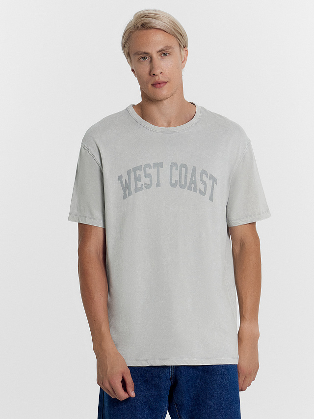 Футболка мужская с текстовым принтом в виде надписи "West coast / Западное побережье". Модель выполнена из высококачественного 100% хлопка. Длина до середины бедер, свободный прямой силуэт, горловина круглая, линия плеча немного спущена, рукава короткие. Сохраняет свой насыщенный цвет и качество даже после многократных стирок. Обладает хорошей устойчивостью к выцветанию и отлично держит форму. Подойдет для повседневной носки и поможет создать стильный городской образ. Широкий размерный ряд. Рекомендуем!