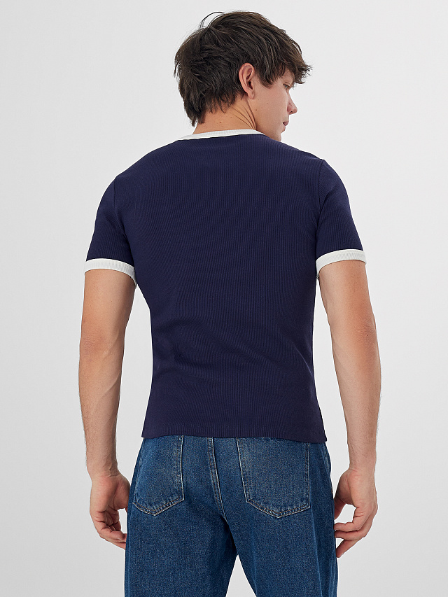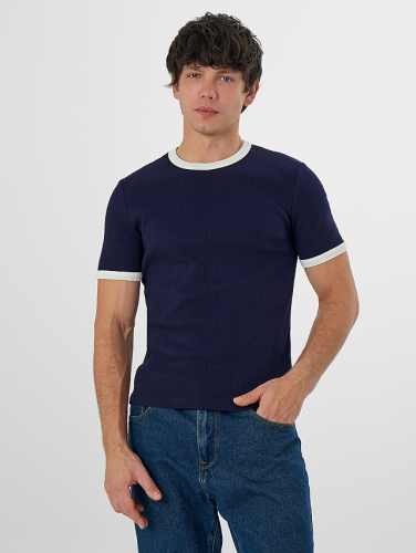 Футболка мужская синяя с контрастной отделкой