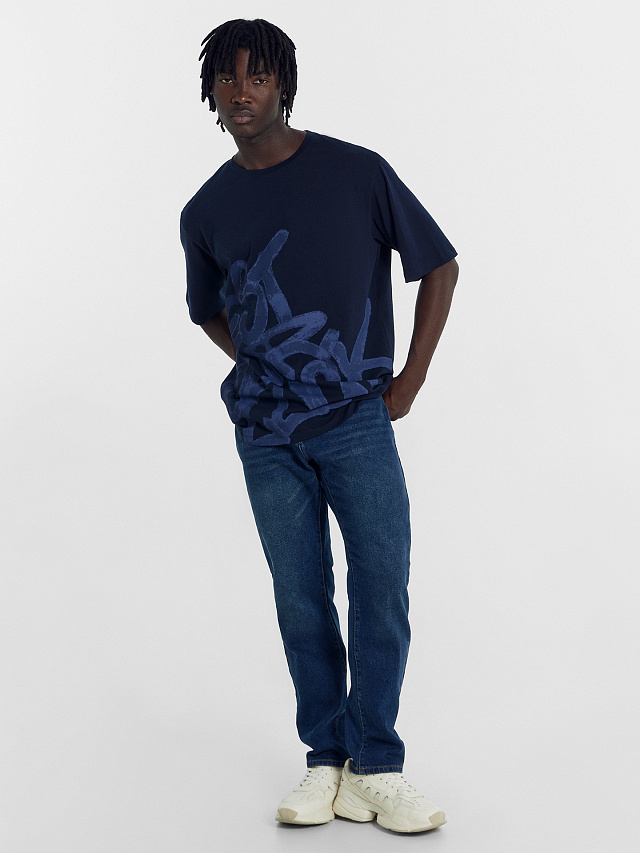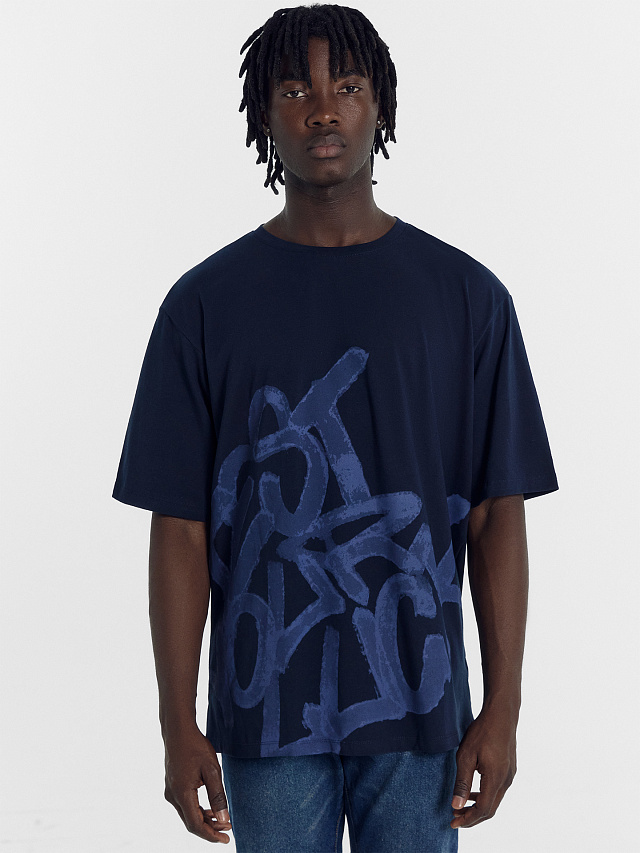 Футболка мужская синяя с печатью