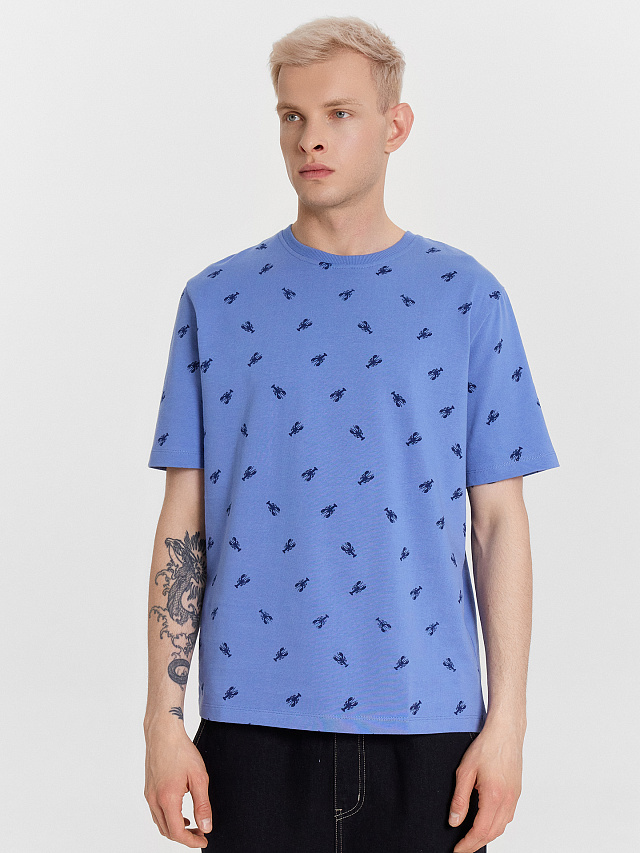 Футболка мужская синяя с принтом "лобстеры"
