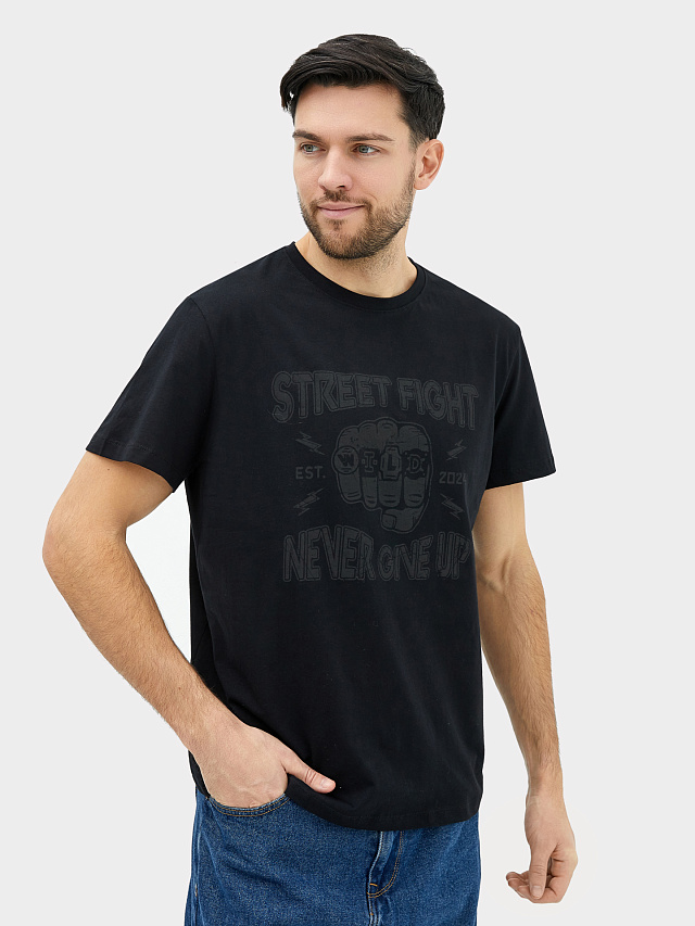 Хлопковая мужская футболка с принтом и надписью "STREET FIGHT EST. 2024 NEVER GIVE UP". Свободный силуэт. Горловина круглой формы. Спущенная линия плеча и углубленная пройма гарантируют свободу движений. Длина рукава чуть выше локтя. Базовая модель, которая отлично вписывается в повседневный образ. Ее можно надеть на работу, если у вас нет строго дресс-кода и учебу. Такая футболка мужская оверсайз оптимальна для носки в любое время года. Она является универсальной и будет прекрасно сочетаться со многими вещами в вашем гардеробе. В линейке широкая размерная сетка. Порадуйте себя практичными подарками от Mark Formelle!