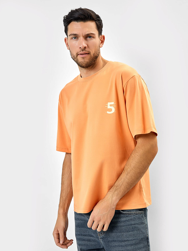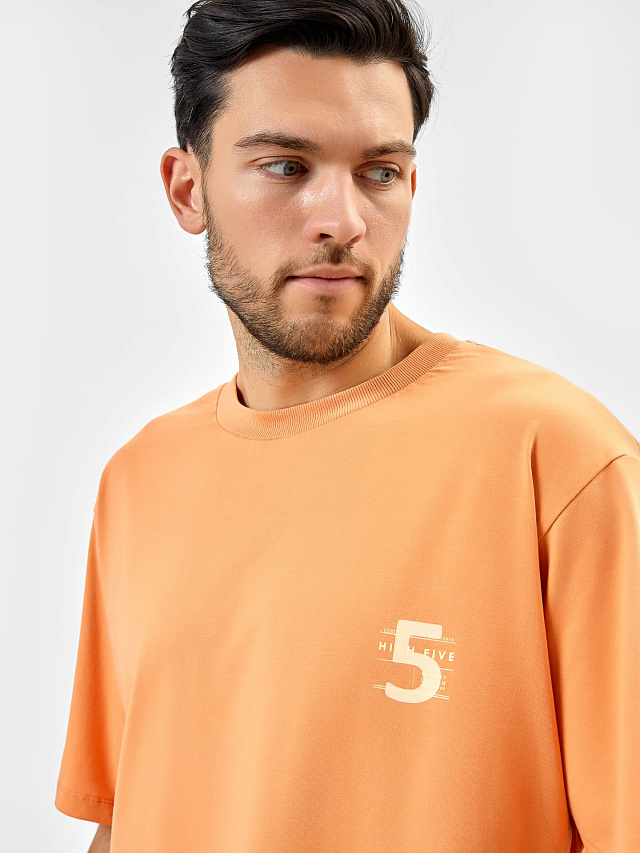 Футболка мужская в оранжевом цвете с печатью