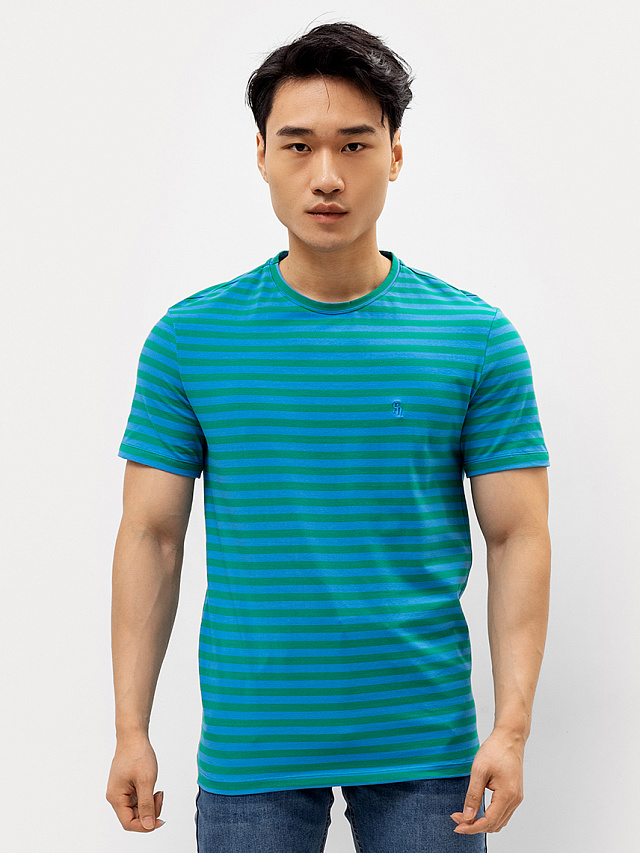 Футболка мужская в зелено-голубую полоску