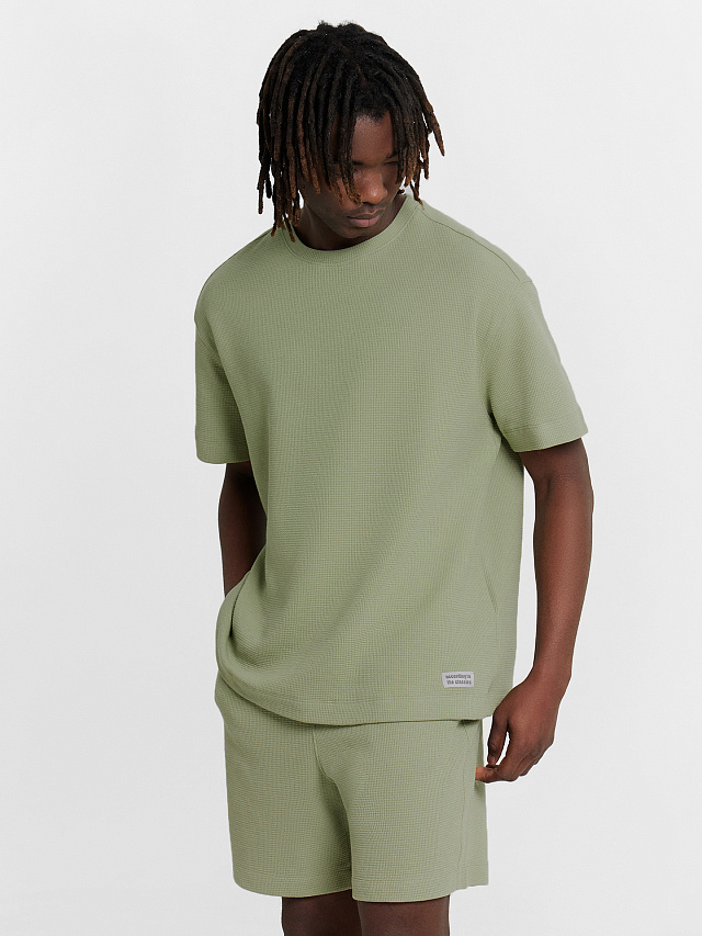 Мужская футболка прямого силуэта — это универсальный и стильный элемент гардероба, который подойдет для повседневного ношения. Круглая горловина подчеркивает классический стиль, а спущенное плечо добавляет современный акцент, создавая расслабленный и непринужденный образ. Короткие рукава обеспечивают комфорт и свободу движений, а нижний край, обработанный швом вподгибку, гарантирует аккуратность и долговечность изделия. Выполненная из хлопкового материала с вафельной текстурой, футболка отличается мягкостью, воздухопроницаемостью и приятными тактильными ощущениями. Отличный выбор для теплых дней и создания повседневного стиля! Рекомендуем.