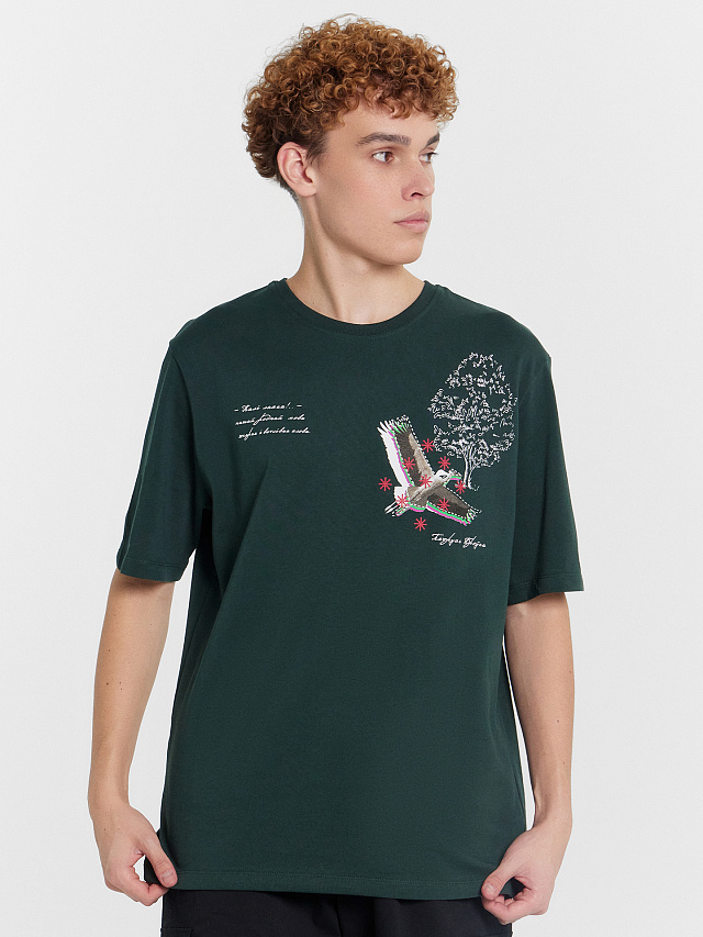 Эта мужская футболка из коллекции "From Belarus With Love" сочетает в себе стиль, удобство и символику белорусского дизайна. Модель прямого силуэта с круглым вырезом горловины и короткими рукавами со спущенной линией плеча создает расслабленный и современный образ, идеально подходящий для повседневной носки. Изделие выполнено из хлопковой кулирки — мягкого и дышащего материала, который приятно ощущается на коже и обеспечивает комфорт в течение всего дня. Ткань обладает высокой воздухопроницаемостью, что делает футболку отличным вариантом для активного образа жизни. Эта модель — не просто базовый элемент гардероба, но и способ выразить свою индивидуальность через стиль. Белорусский акцент в дизайне добавляет уникальности и делает футболку особенной. Отличный выбор для тех, кто ценит качество, комфорт и элементы национальной эстетики в повседневной одежде!