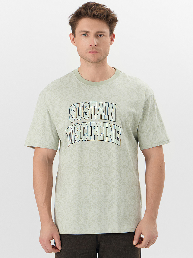 Зеленая мужская футболка с надписью «Поддерживай дисциплину. Владей своей судьбой» — это лаконичная и стильная модель для повседневного гардероба. Она выполнена из хлопка, который обеспечивает натуральность, мягкость и отличную воздухопроницаемость.