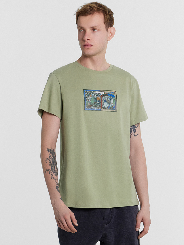 Футболка мужская зеленая с принтом и надписью "откройте вторую кассу"