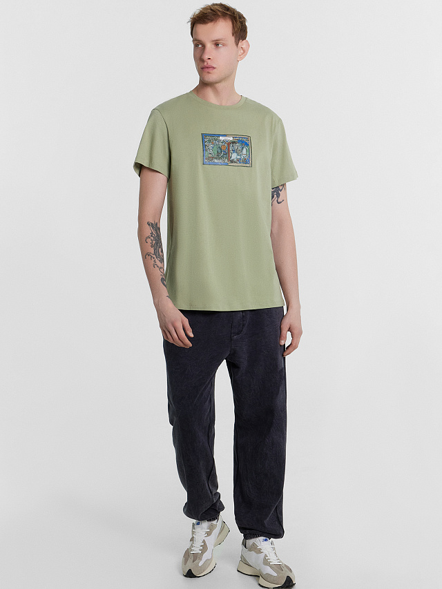 Эта стильная мужская футболка — базовый элемент гардероба, который сочетает удобство и современный дизайн. Прямой силуэт обеспечивает комфортную посадку и свободу движений, делая модель универсальной для повседневного ношения. Длина до середины бедра позволяет легко сочетать футболку с различными вариантами одежды, создавая актуальные образы. Спинка и перед выполнены без швов и рельефов, что придает изделию лаконичность и удобство. Круглая горловина создает классический акцент, а короткие рукава делают модель практичной, подходящей для любого сезона. Кулирное полотно, из которого выполнено изделие, отличается мягкостью и воздухопроницаемостью, обеспечивая комфорт в течение всего дня. Идеальный выбор для стильных мужчин, которые ценят качество и удобство!