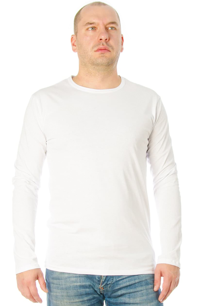 Футболка мужская однотонная с длинным рукавом, классический (прямой) покрой. В изготовлении футболок, используется трикотажное кулирное полотно, состоящее из 100% хлопка, плотностью 150-160  г/м2.
