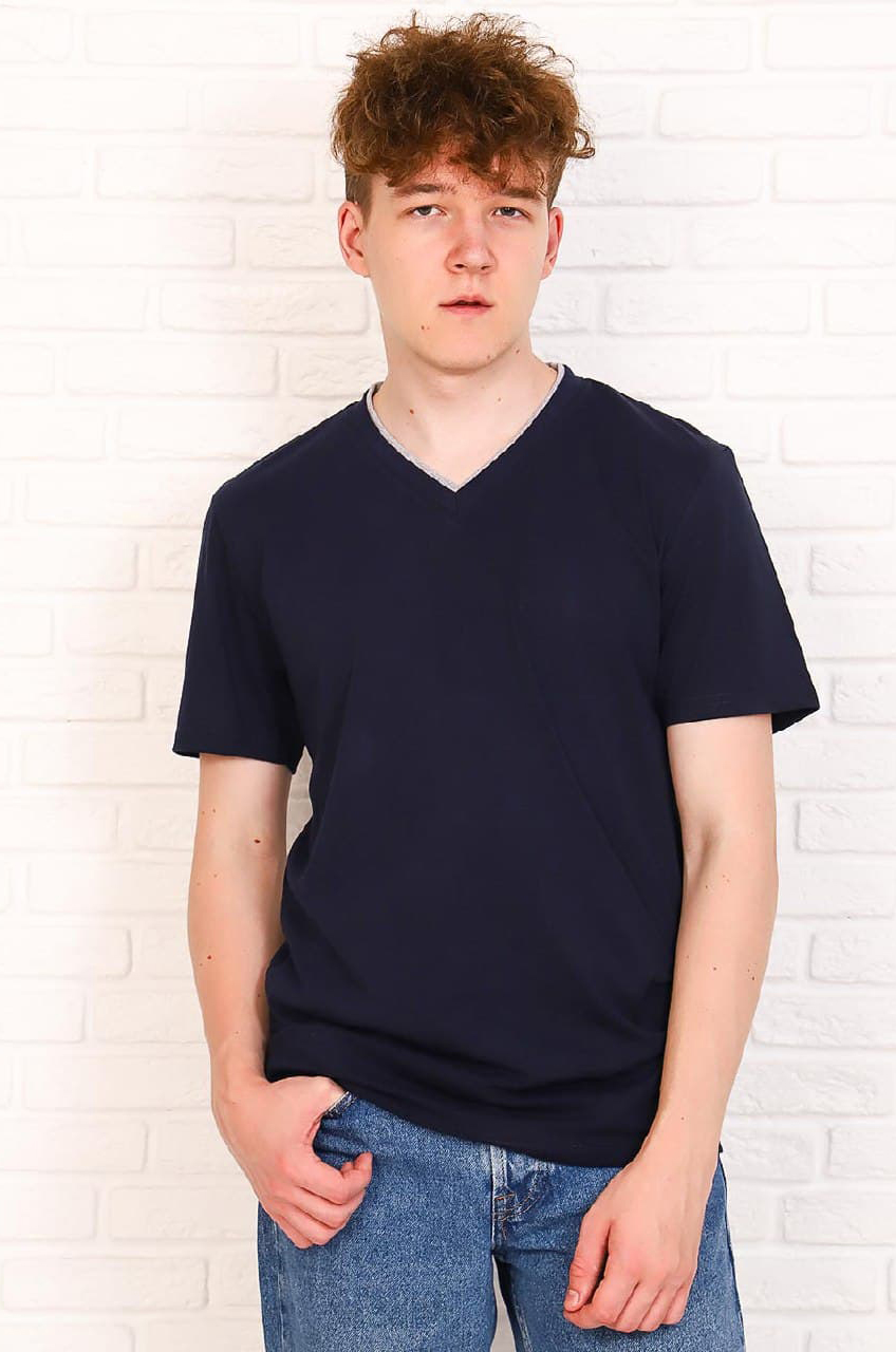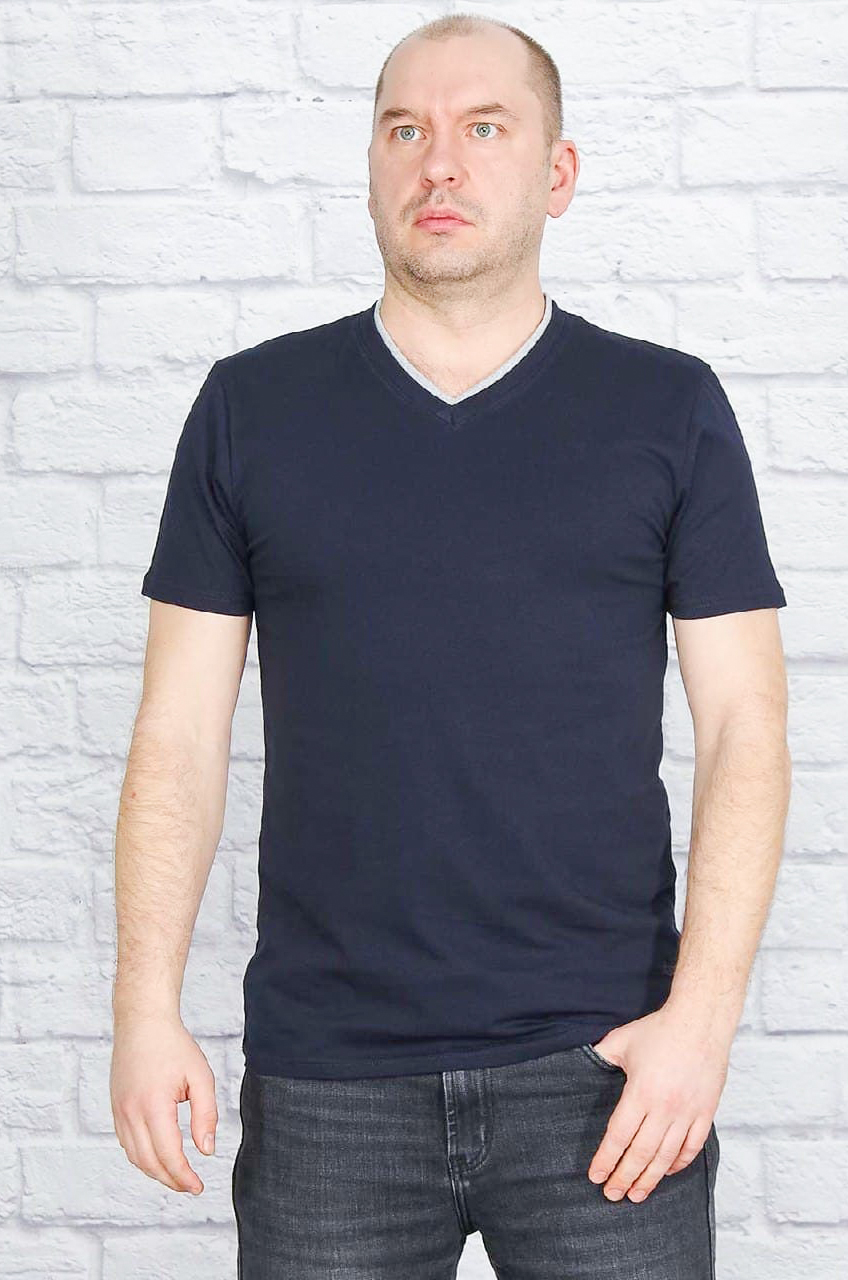 Стильная однотонная футболка с коротким рукавом и V - образным вырезом.