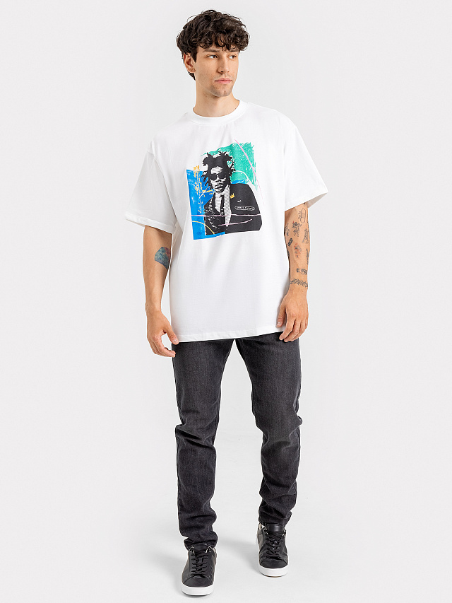 Футболка оверсайз мужская в белом цвете с принтом