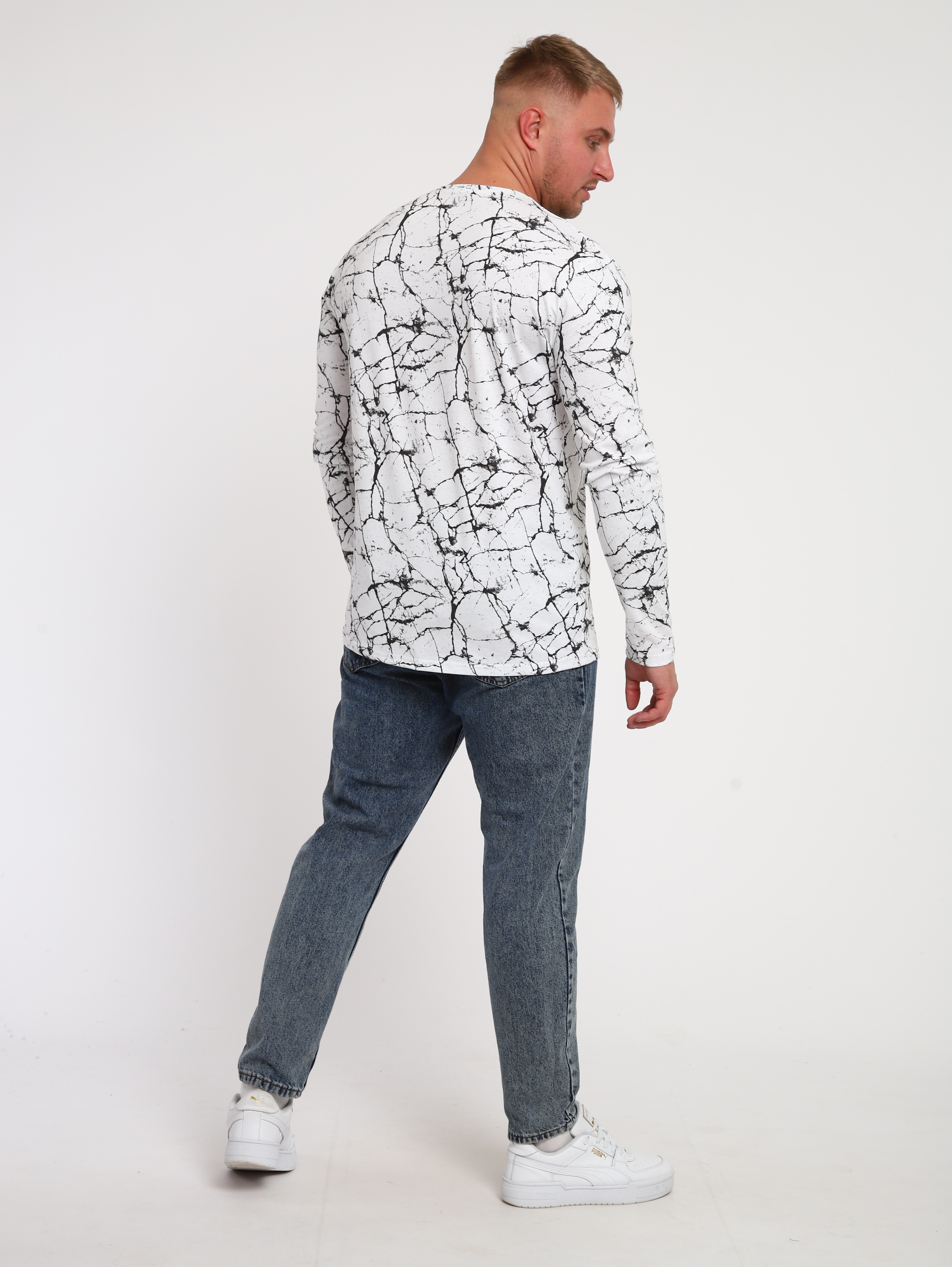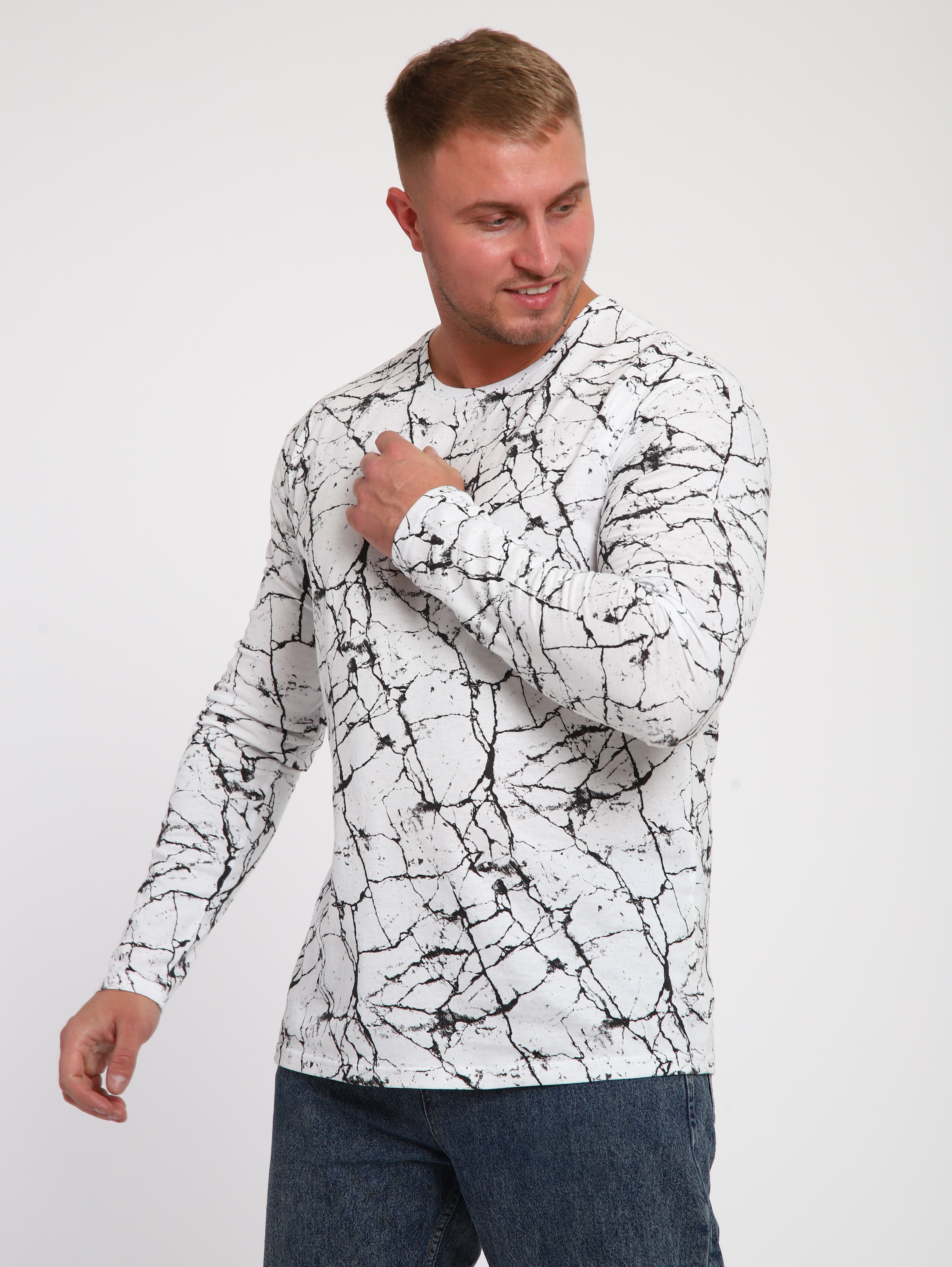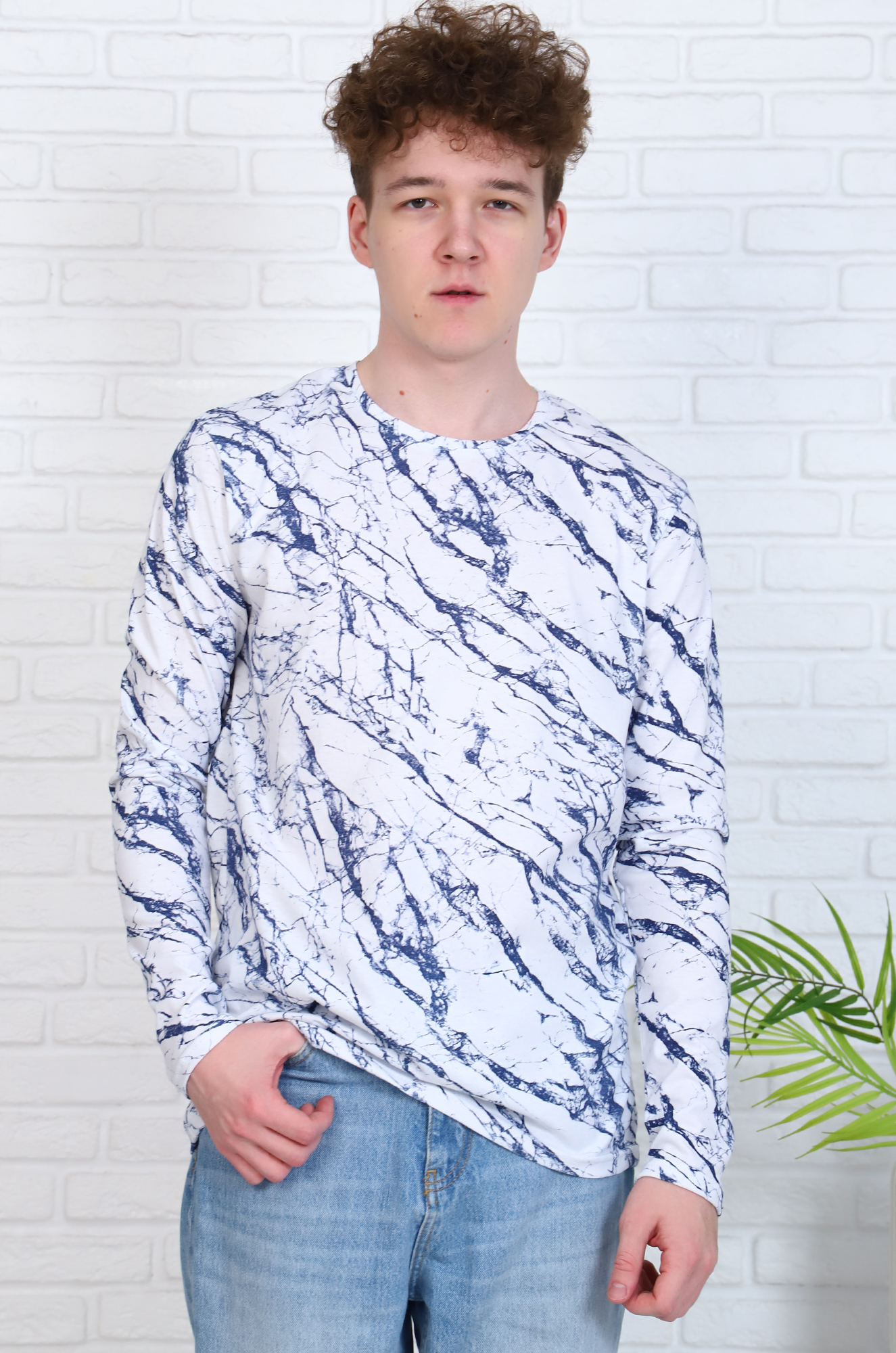 Хлопковая мужская футболка с длинным рукавом. Модель прямого кроя. Эффектная, стильная расцветка "под мрамор" отлично сочетается с джинсами.