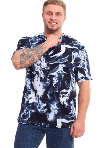 Хлопковая мужская футболка прямого кроя. Эффектная, стильная расцветка "под мрамор" отлично сочетается с джинсами.