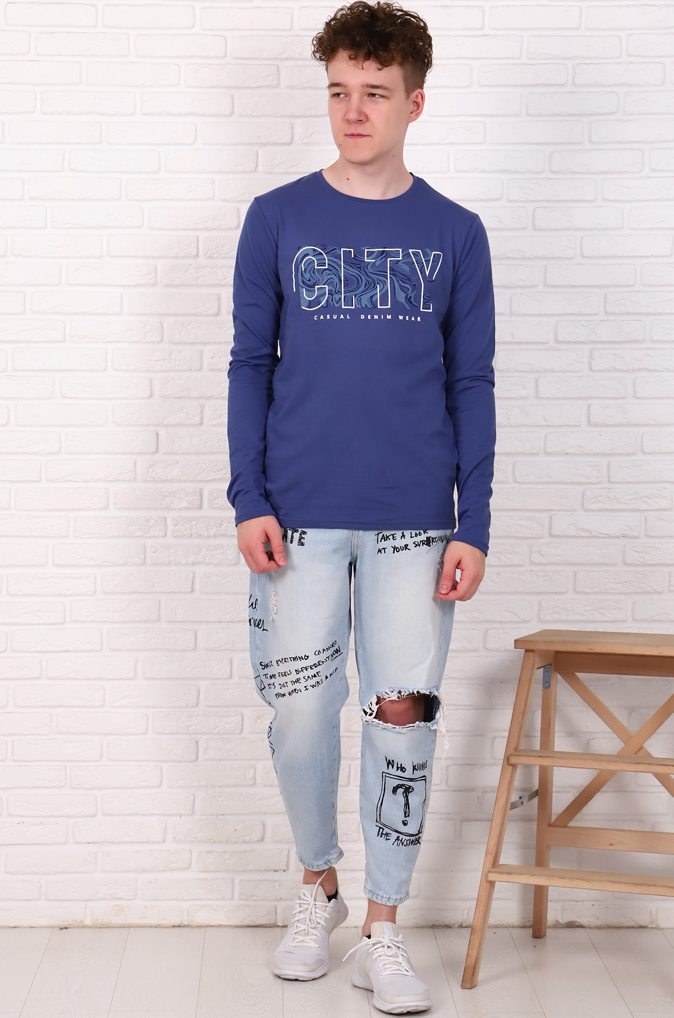 Мужской лонгслив - хлопковая футболка с длинным рукавом - идеальный вариант на прохладную погоду. Модель прямого кроя, рукав втачной. Стильный печатный принт на полочке.