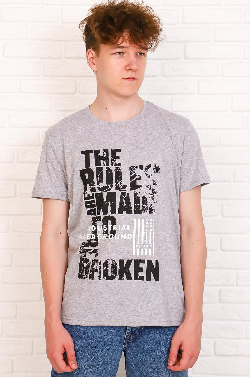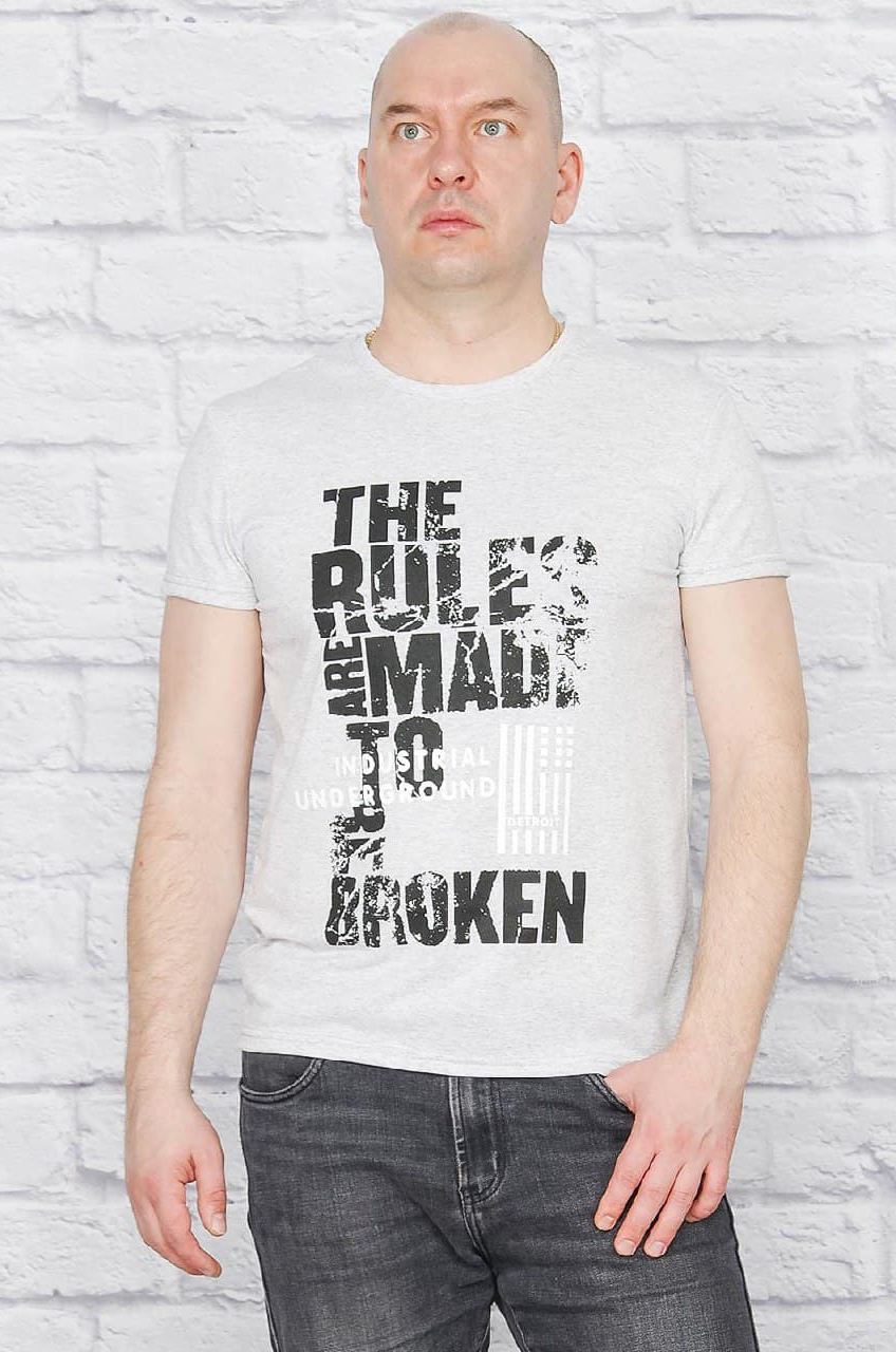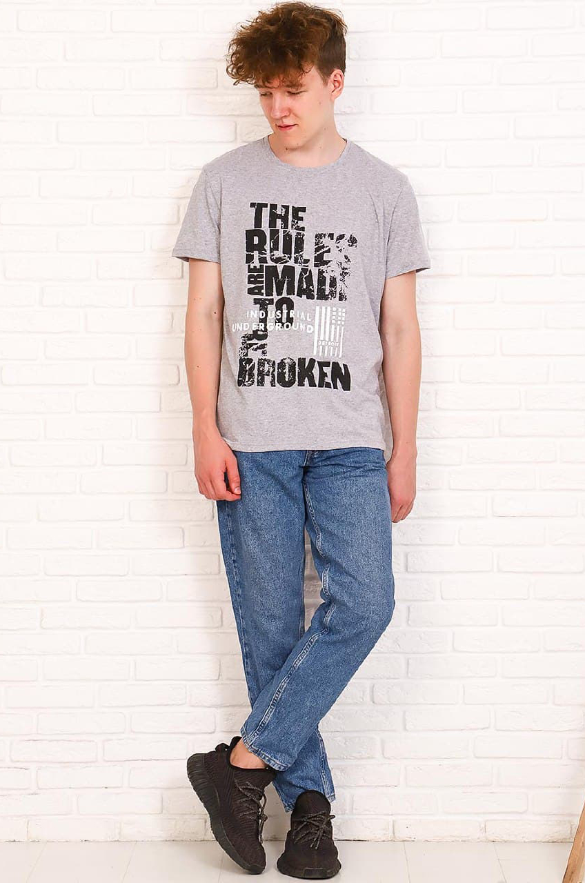 Удобная хлопковая футболка для мужчин. Модель классического, прямого кроя, с втачным рукавом. Модный печатный принт "разместился" на полочке.  Отличный вариант на каждый день к джинсам и шортам.