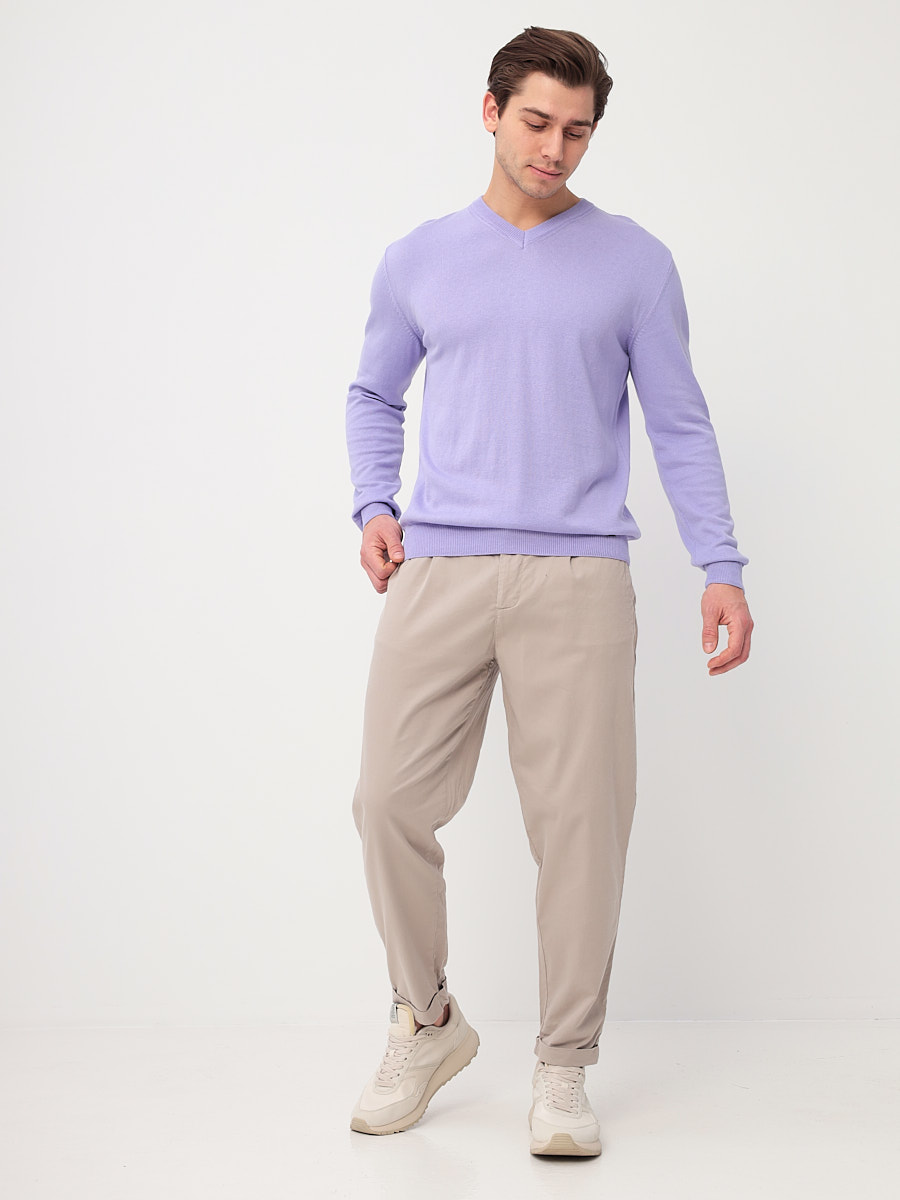 Цвет: Сиреневый Рисунок: Трикотаж..показать однотонный Состав: 75% хлопок 25% акрил Модель: Классическая Ворот: V-вырез Силуэт: Прямой силуэт / Сlassic fit однотонный