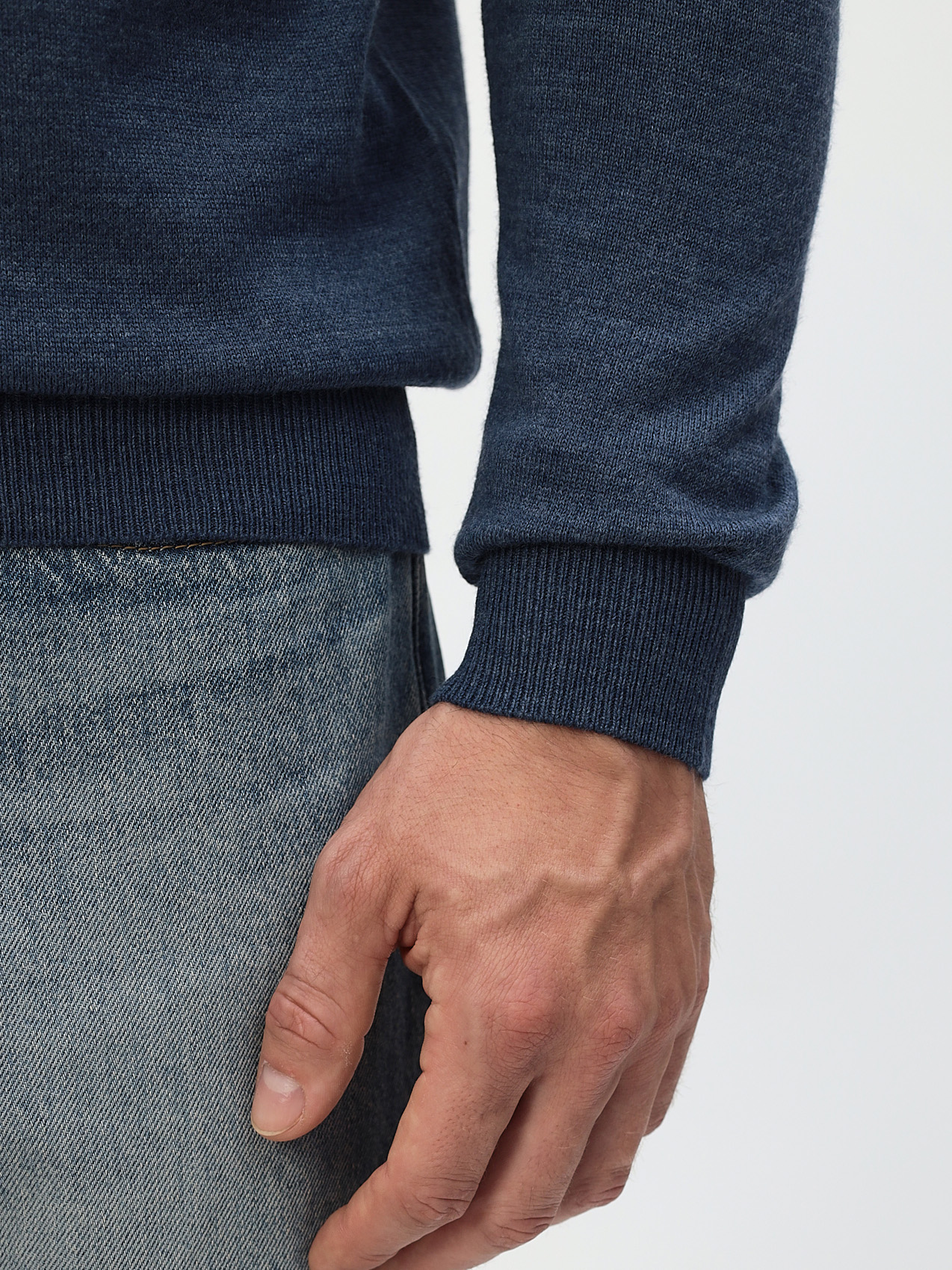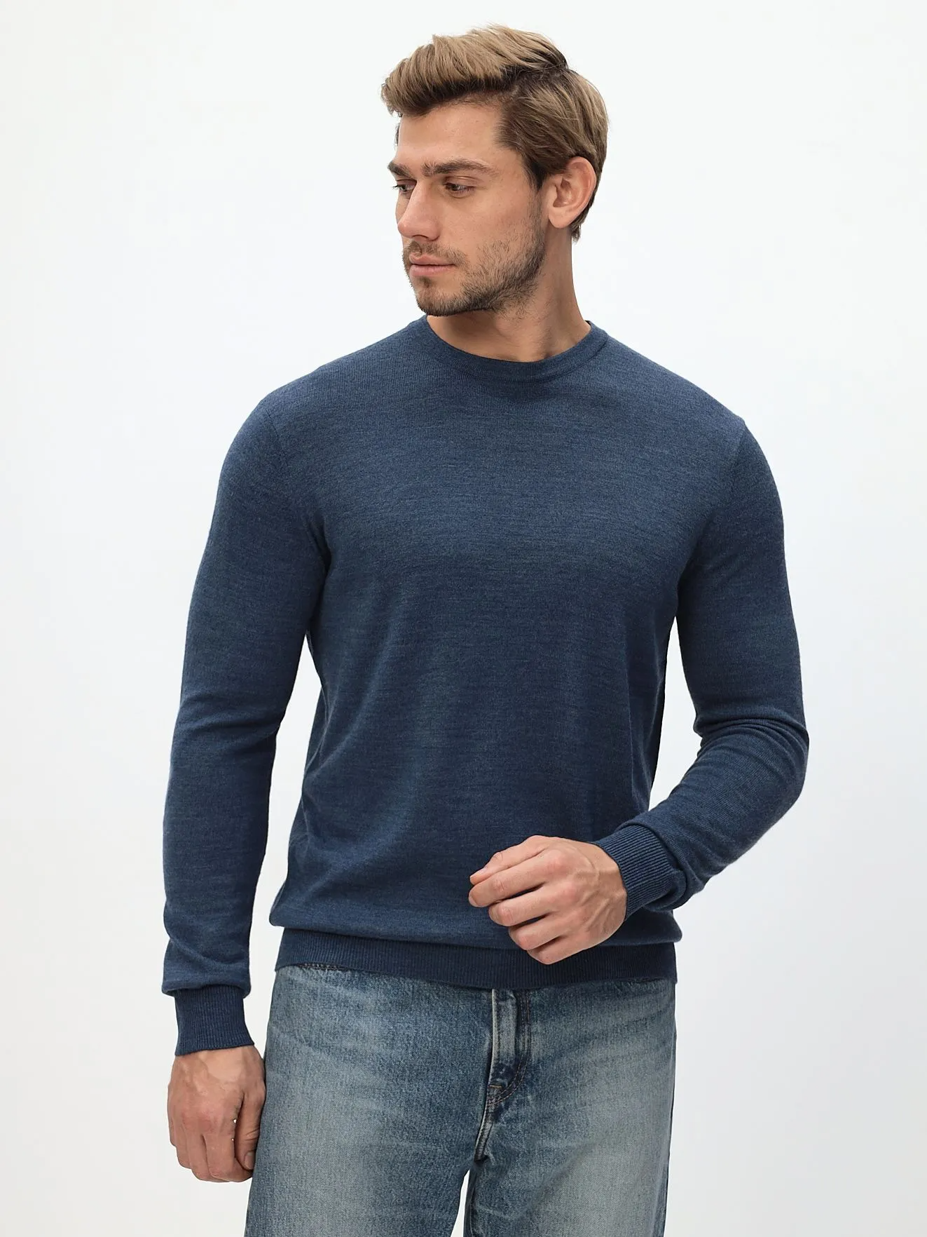 Цвет: Синий Рисунок: Меланж ..показатьСостав: 80% шерсть мериноса 20% акрил Модель: Классическая Ворот: Круглый Караман: отсутствует Силуэт: Прямой силуэт / Сlassic fitСостав: 80% шерсть мериноса 20% акрил Модель: Классическая Ворот: Круглый Караман: отсутствует Силуэт: Прямой силуэт / Сlassic fit