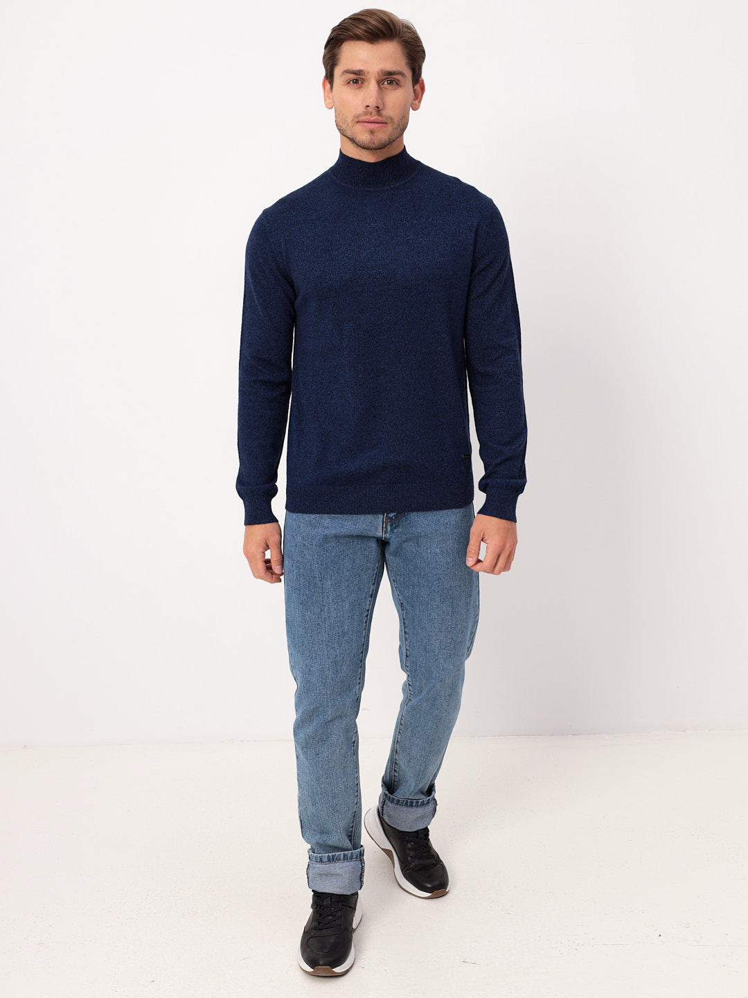 Цвет: Синий Рисунок: Трикотаж одн..показатьотонный Состав: 50% шерсть мерс. 46%акрил 4% кашемир Модель: Классическая Ворот: Полугольф Силуэт: Прямой силуэт / Сlassic fitотонный