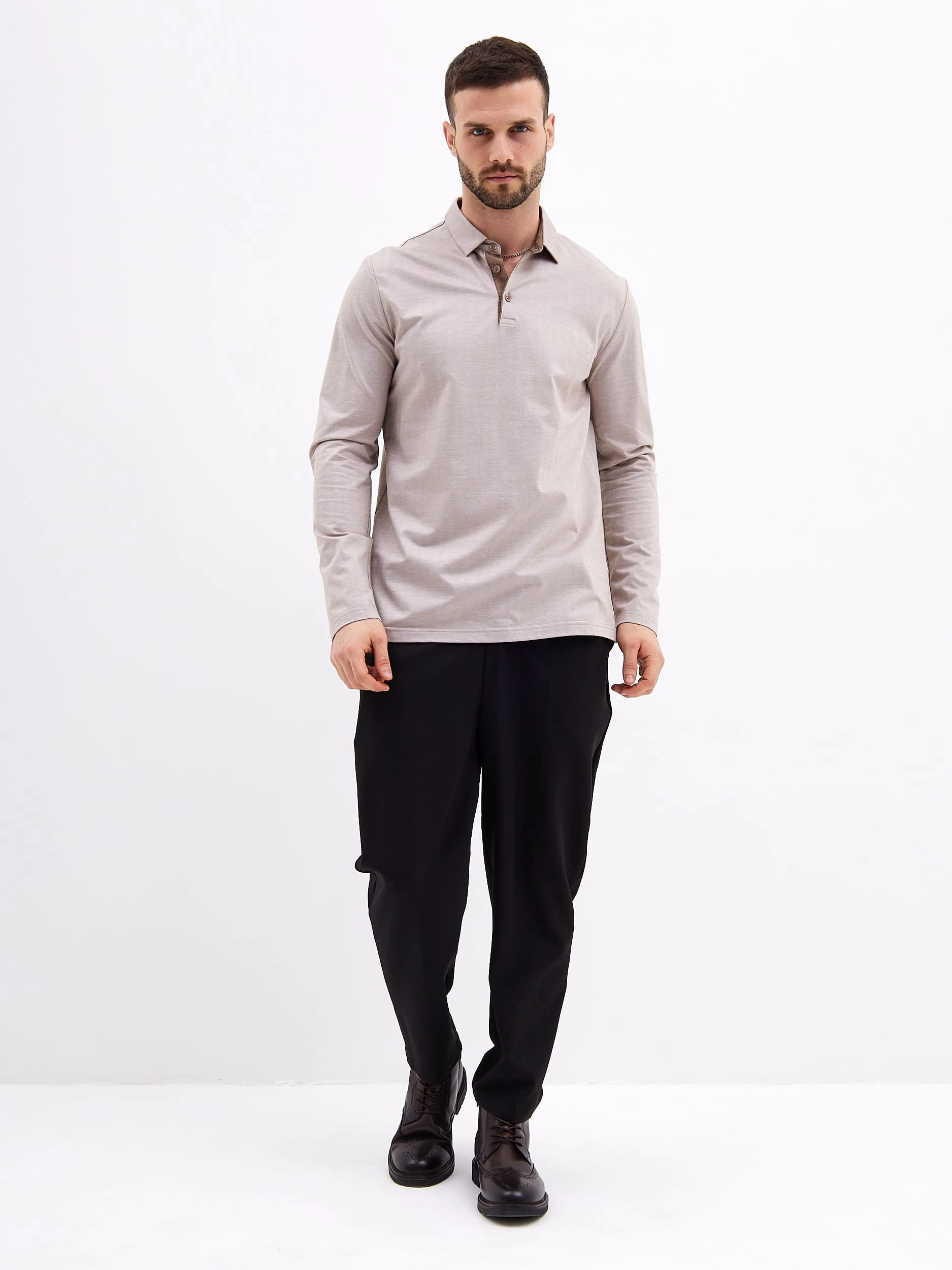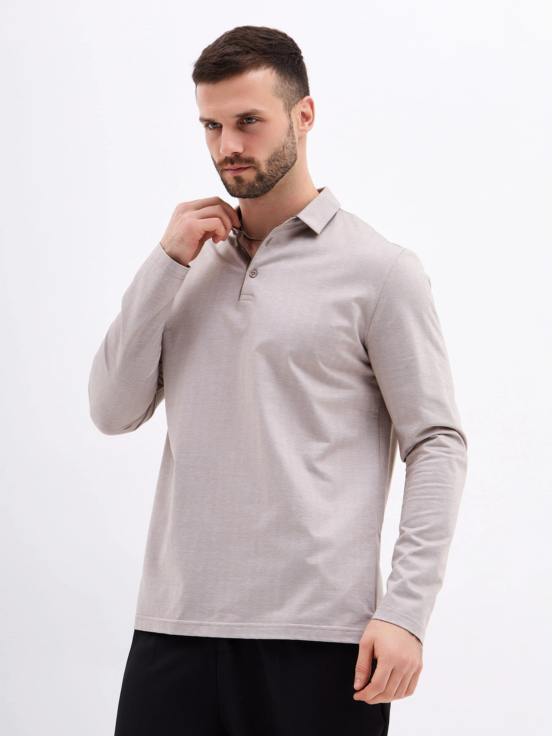 Джемпер мужской с воротником поло GREG G155-TD1246-LT0414-2 (бежевый)
