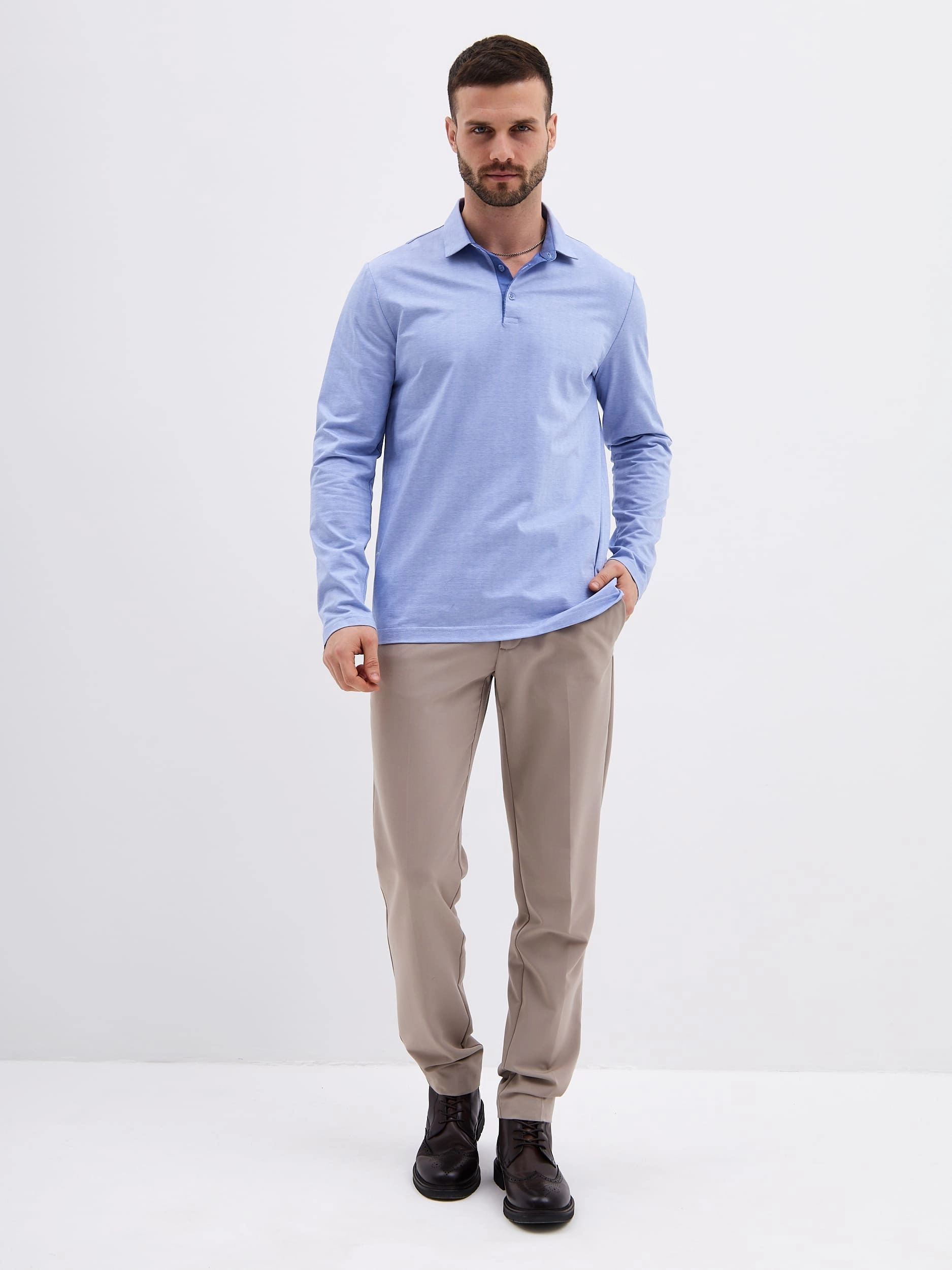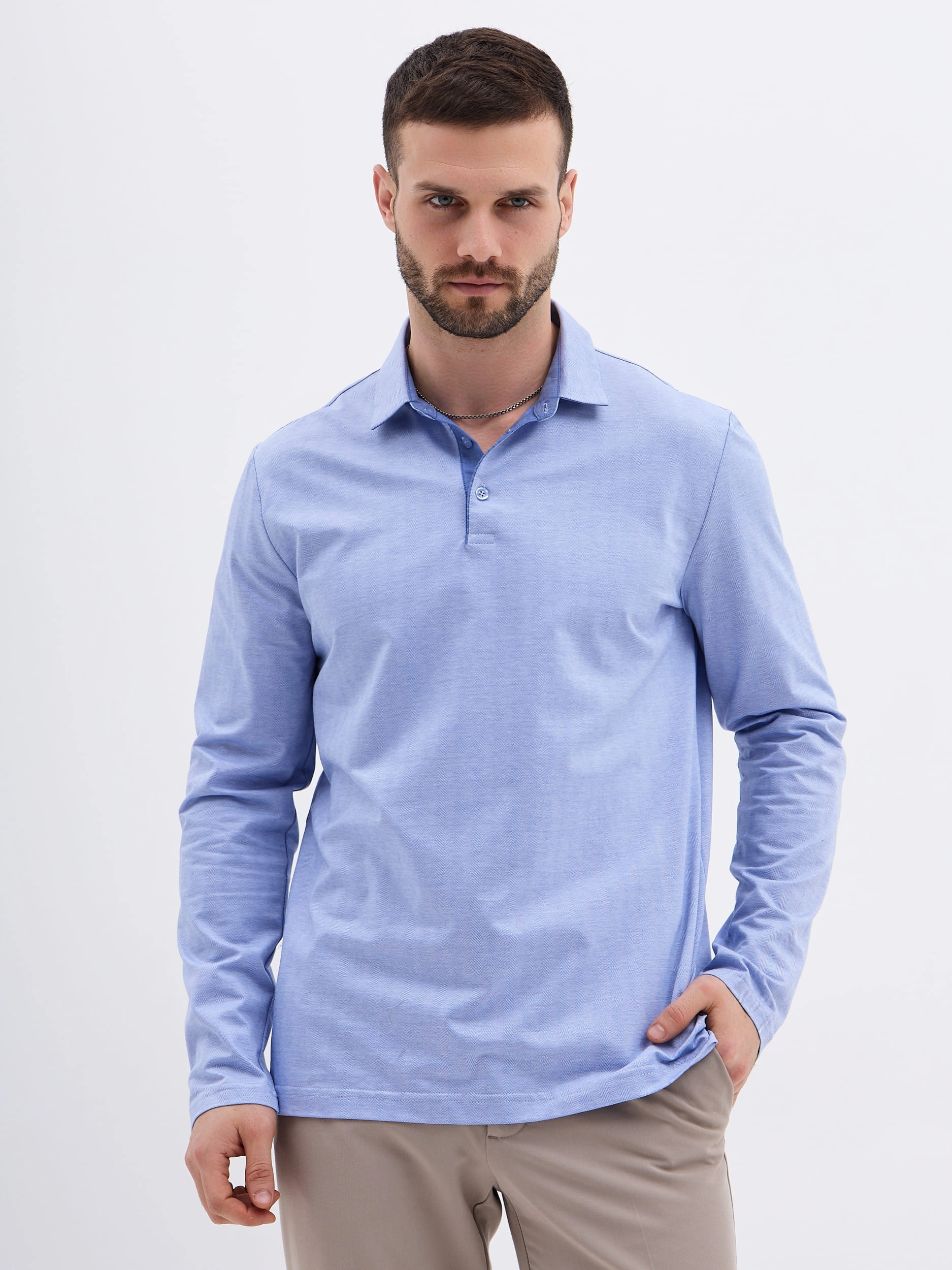 Джемпер мужской с воротником поло GREG G155-TD1246-LT0414-4 (т.голубой)