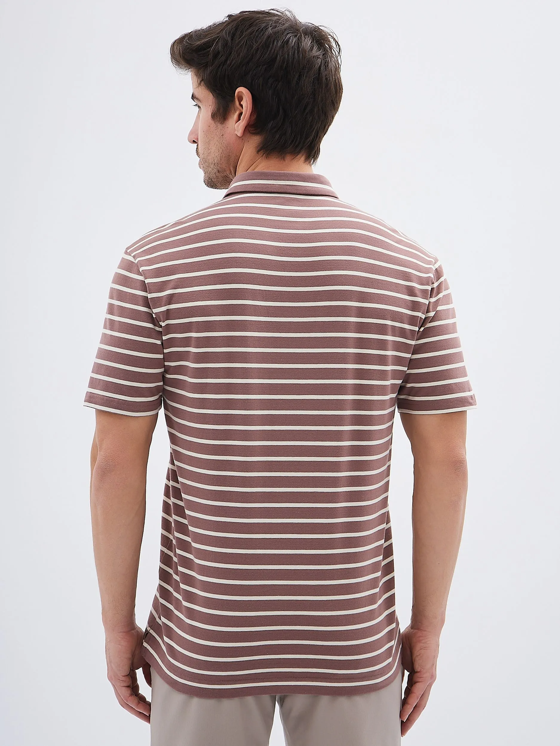 Джемпер мужской с воротником поло короткий рукав GREG G144-KD-HJ-02-4T (экрю полоска)