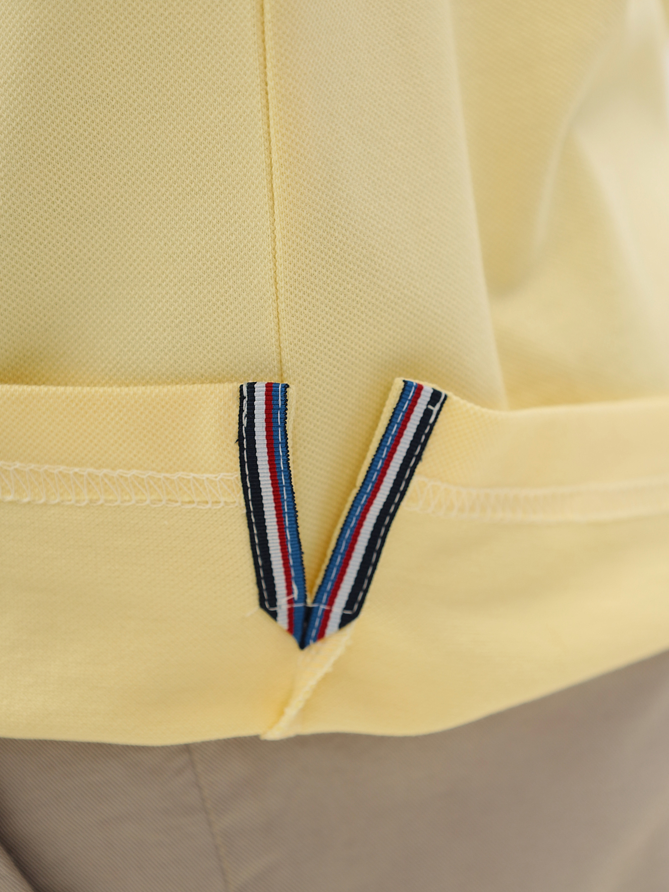 Цвет: Желтый Рисунок: Пике одното..показатьн Состав: 95% хлопок 5% эластан Модель: Классическая с разрезами по бокам Ворот: Круглый Караман: отсутствует Силуэт: Прямой силуэт / Сlassic fitн
