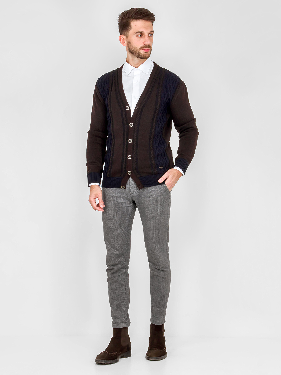 Кардиган мужской GREG G135-07 цепи D2 (син./корич.)