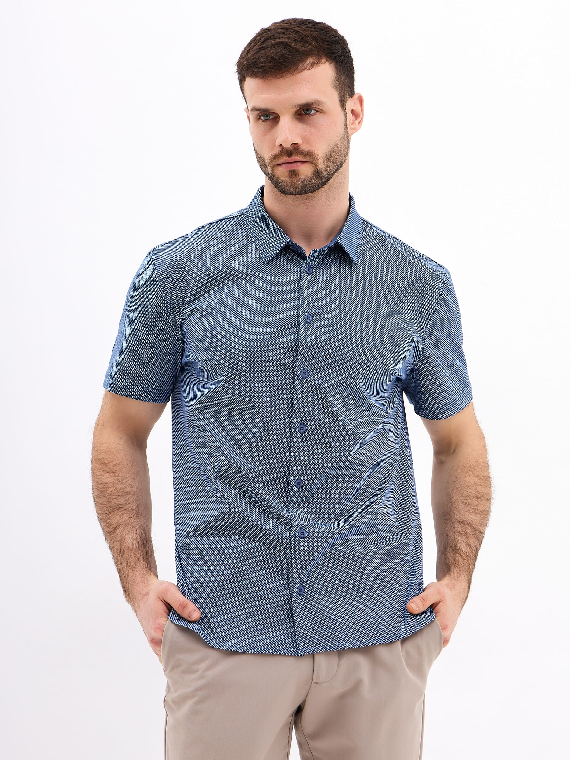 Рубашка мужская короткий рукав GREG G143-TD1-LT4617 (синий)