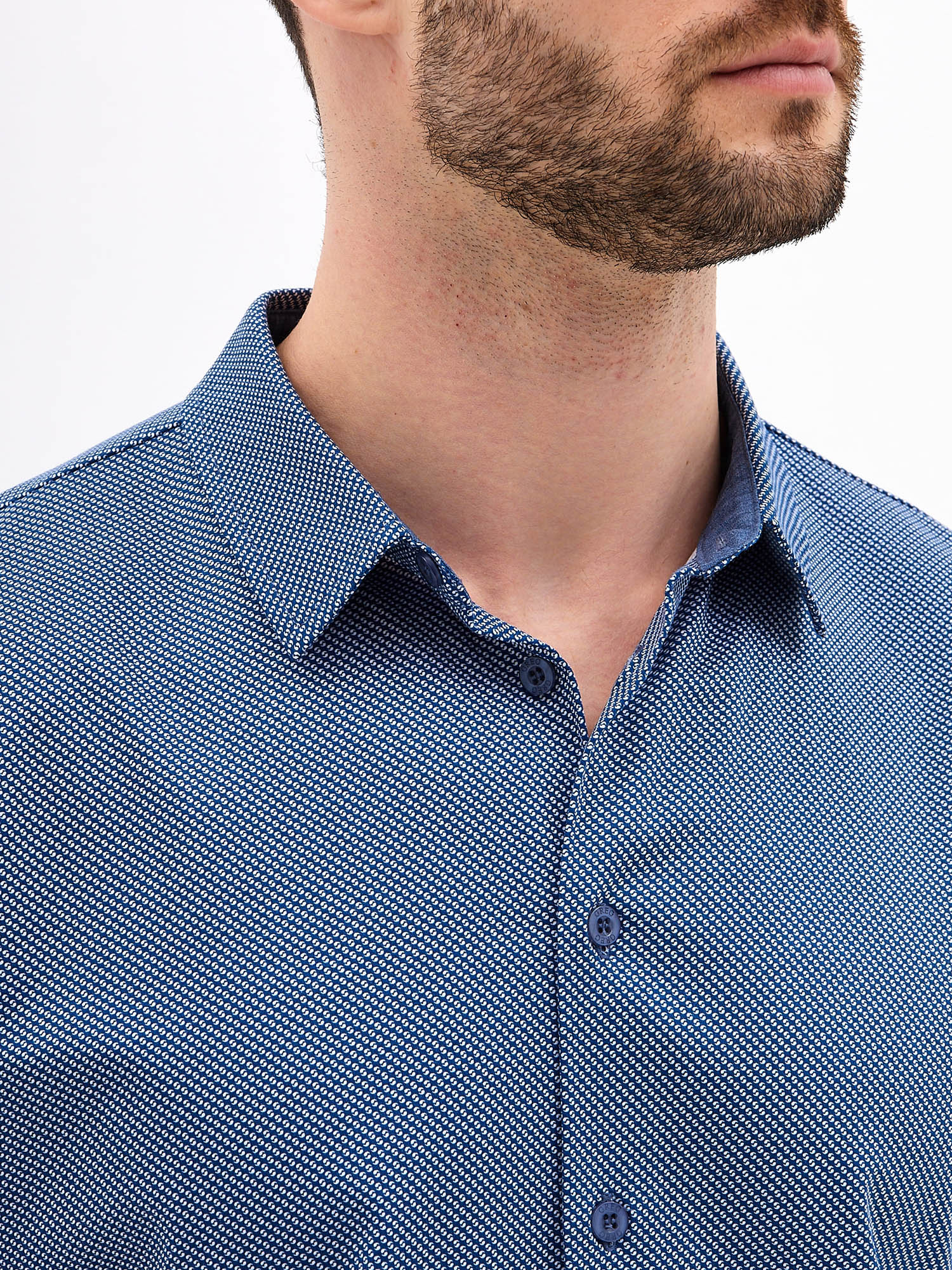 Цвет: Синий Рисунок: В мелкие эле..показатьменты Состав: 100% хлопок Модель: Классическая Ворот: Из основной ткани на стойке Караман: отсутствует Силуэт: Прямой силуэт / Сlassic fit00000000-0000-0000-0000-000000000000менты