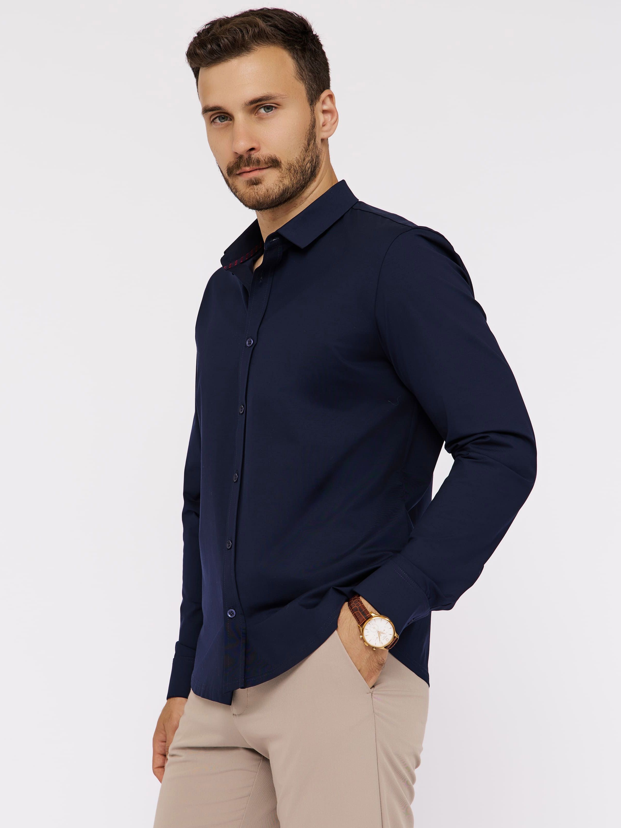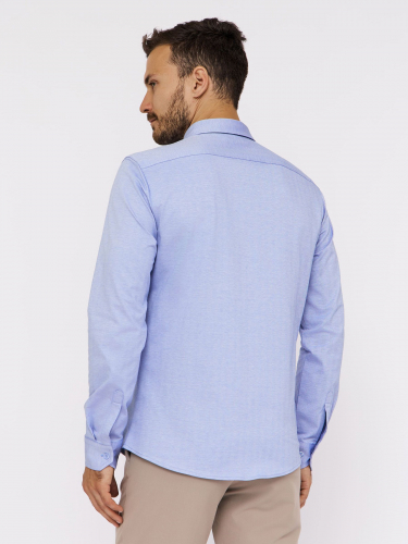 Цвет: Синий Рисунок: Без рисунка<..показать/li> Состав: 96% хлопок 4% эластан Модель: Прилегающая с планкой спереди Ворот: Немецкий мягкий Караман: отсутствует Манжет: классический с двумя срезами на пуговицах 6 см Силуэт: Прилегающий силуэт / Casual Slim fit Отделка: Сорочки- кант по нижнему краю внутренней стойки воротника из ткани компаньона/li>