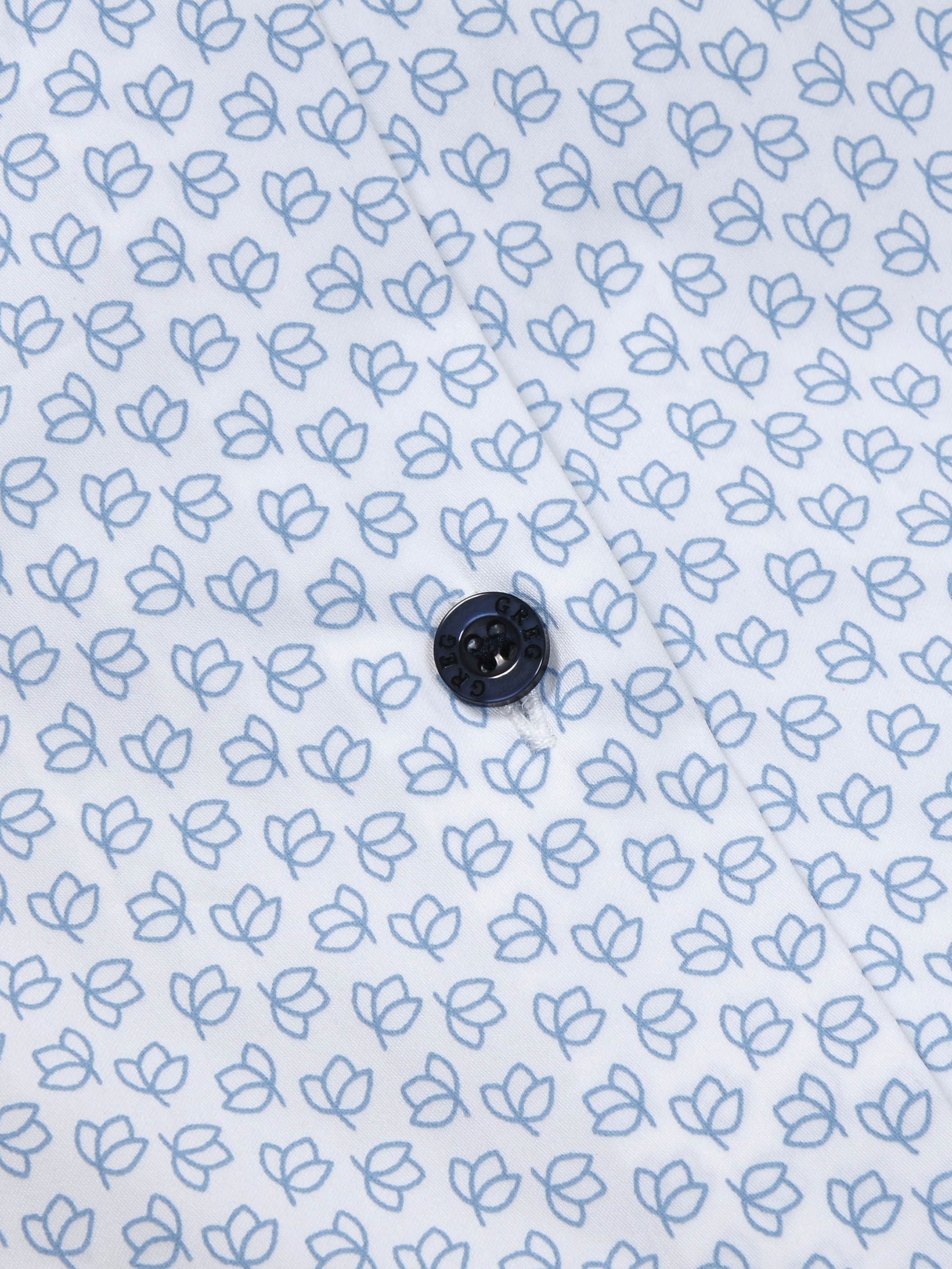 Цвет: Белый Рисунок: В крупные эл..показатьементы Состав: 72% хлопок 24% нейлон 4% спандекс Модель: Прилегающая Ворот: Немецкий мягкий Караман: отсутствует Силуэт: Полуприталенный силуэт / Regular fit Отделка: Сорочки- внутренняя стойка воротника из ткани компаньонаементы
