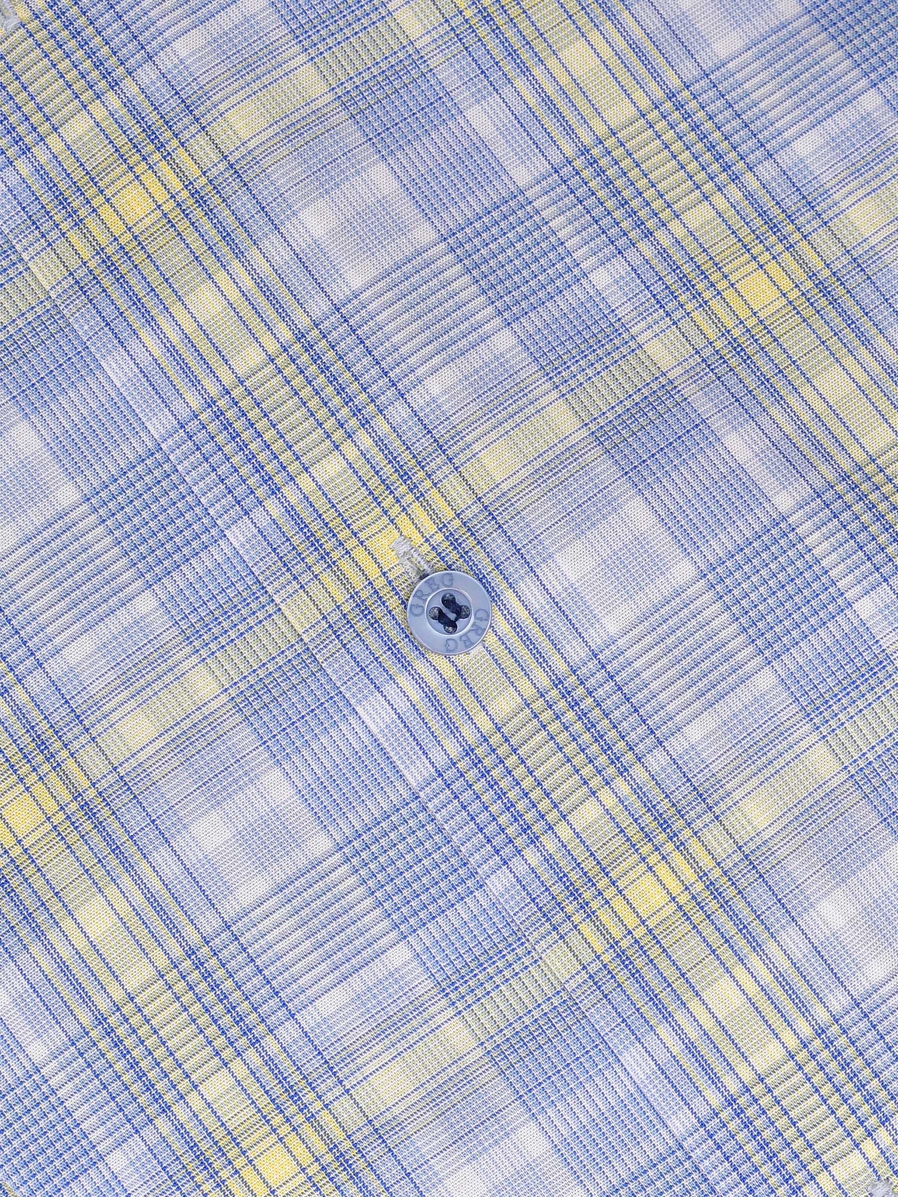 Цвет: Голубой Рисунок: Клетка..показать> Состав: 100% хлопок Easy Care Модель: Зауженная Ворот: Немецкий мягкий Караман: отсутствует Силуэт: Полуприталенный силуэт / Regular fit Отделка: Сорочки- внутренняя стойка воротника, внутренняя кокетка из ткани компаньона>