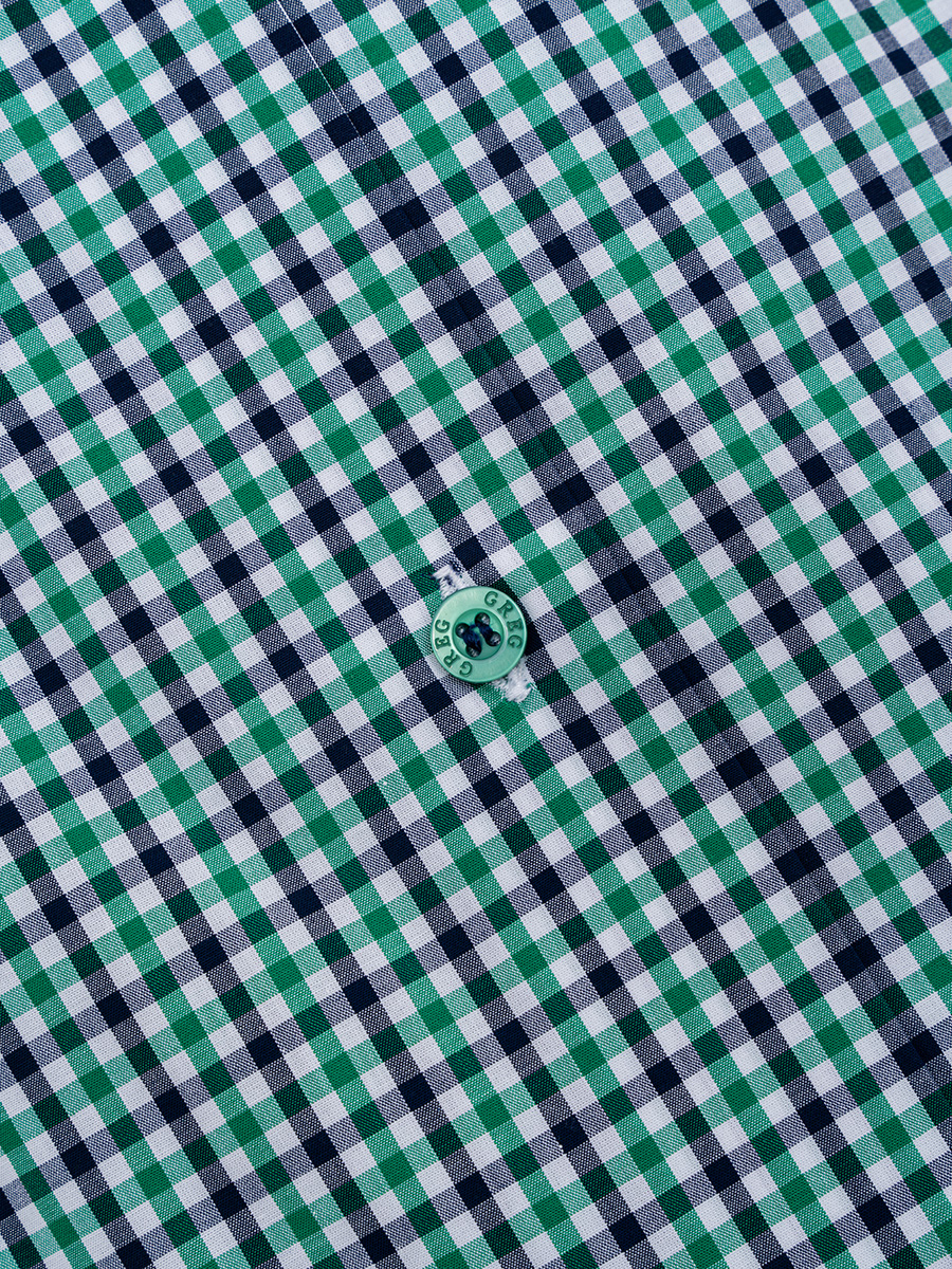 Цвет: Зеленый Рисунок: Клетка..показать> Состав: 100% хлопок Easy Care Модель: Зауженная Ворот: Немецкий Караман: отсутствует Силуэт: Полуприталенный силуэт / Regular fit Отделка: Сорочки- внутренняя стойка воротника из ткани компаньона>