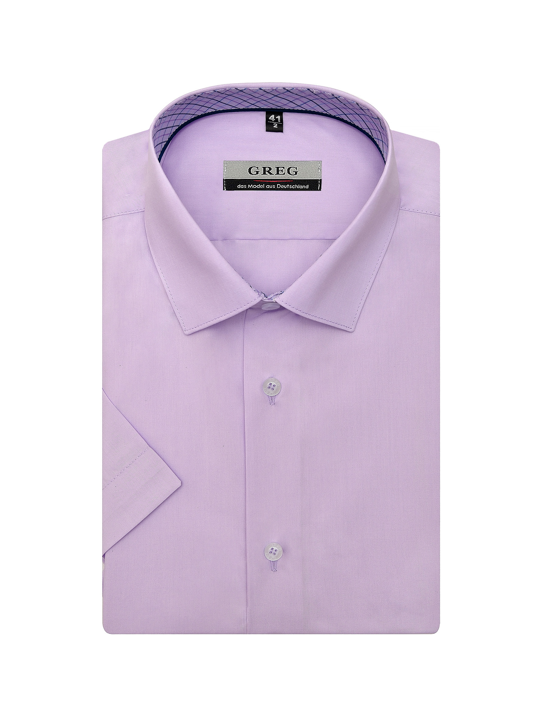 Цвет: Сиреневый Рисунок: Без рису..показатьнка Состав: 90% хлопок 10% полиэстер Модель: Зауженная Ворот: Немецкий Караман: отсутствует Силуэт: Полуприталенный силуэт / Regular fit Отделка: Сорочки- внутренняя стойка воротника из ткани компаньона по косой00000000-0000-0000-0000-000000000000нка