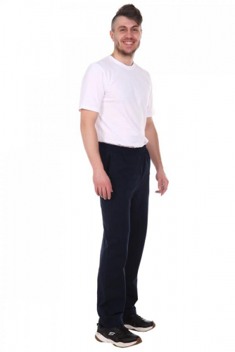 Ткань: футер с начесом; Состав: хлопок 80%, п/э 20%; Сезонность: зима, весна, осень; Стиль: домашний, повседневный, спортивный; Застежка: без застежки; Карман: без карманов; Производство: г. Иваново; Тип изделия: брюки, термокомплекты; Цвет: темно-синий