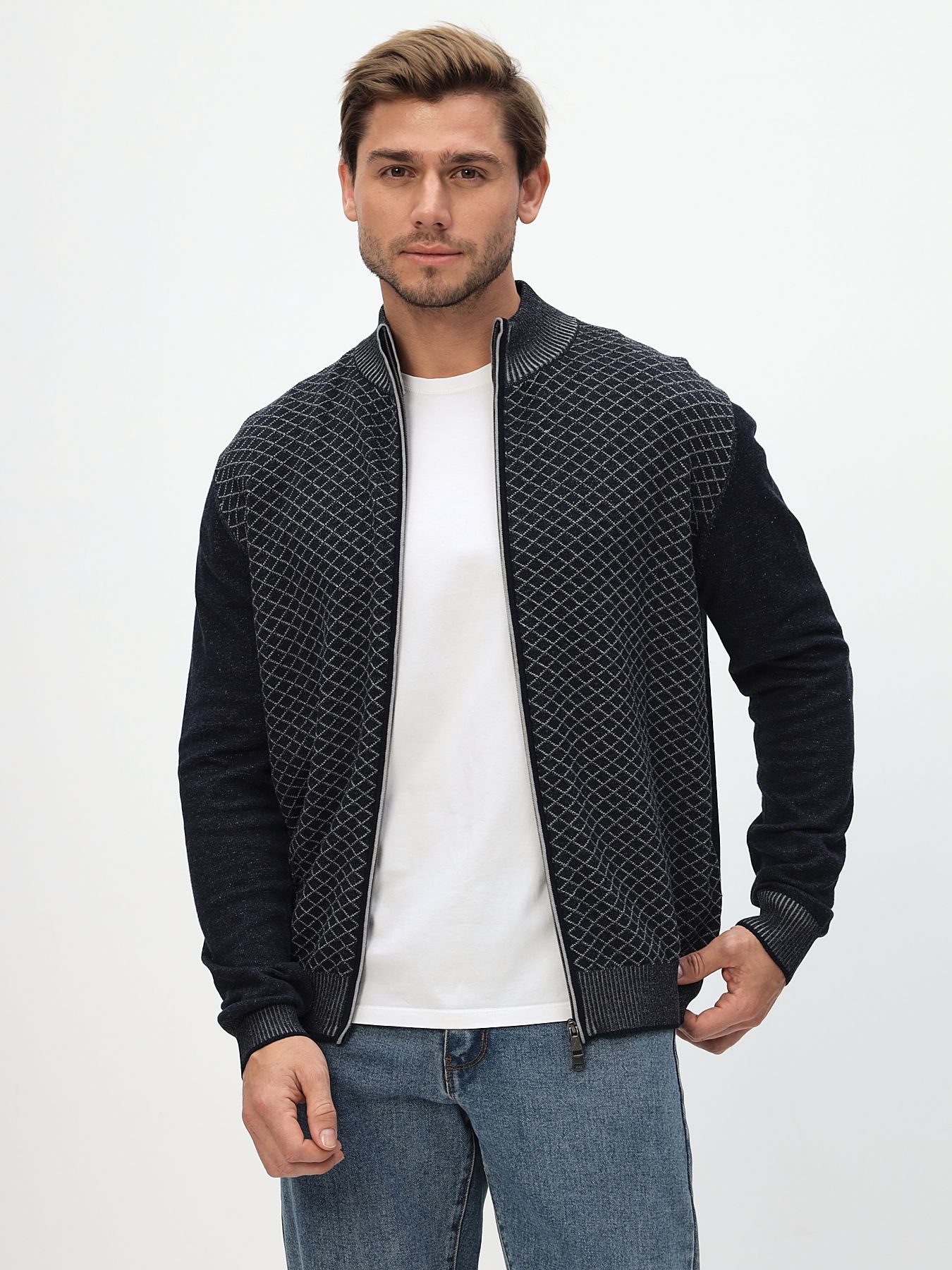 Кардиган мужской GREG G139-14Р ромб (т.синий/серый)