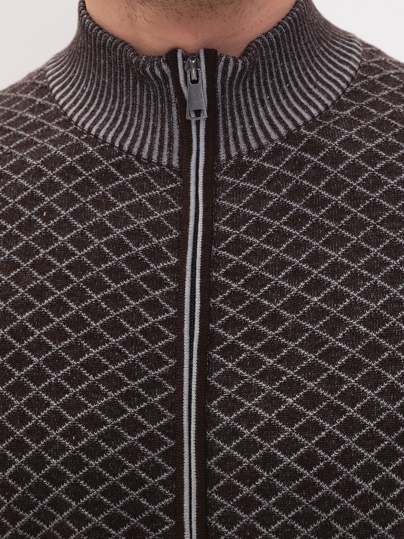 Цвет: Коричневый Рисунок: Ромбы..показатьli> Состав: 55% хлопок 45% акрил Модель: Классическая Ворот: Полугольф на молнии Караман: отсутствуетli>
