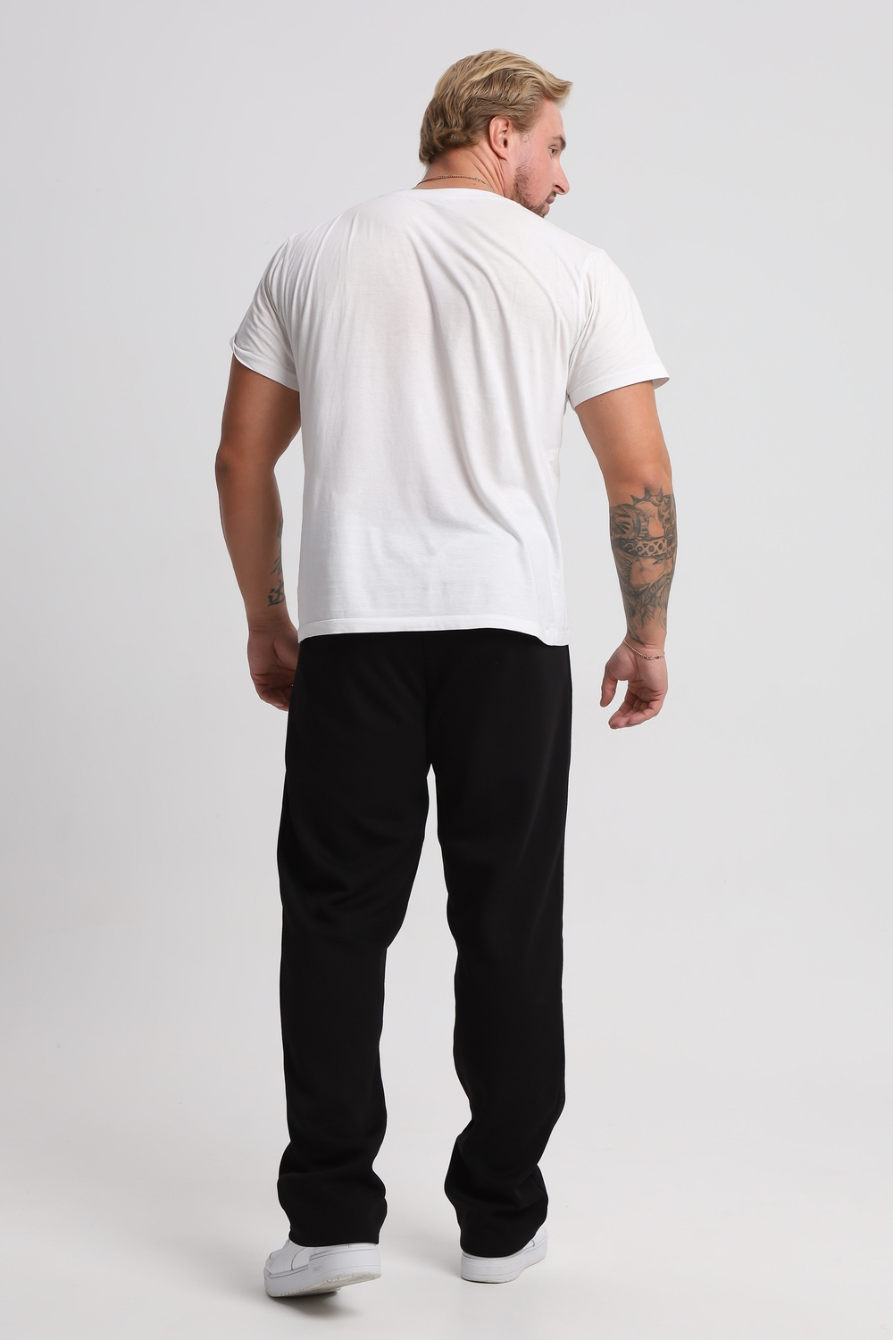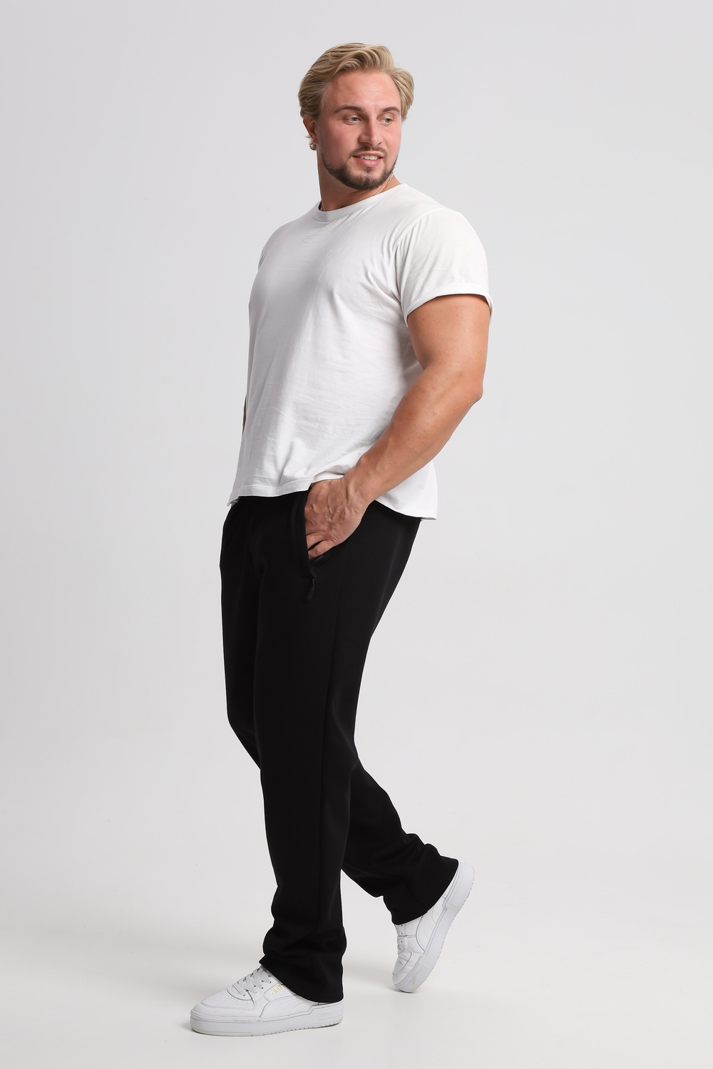 Утепленные мужские брюки из трикотажа с начесом, выполнены из качественного материала. Пояс на резинке со шнурком, что позволяет регулировать объем и посадку, карманы по бокам на молнии. Свободный силуэт не сковывает движения, а плотный начес согреет даже в самые холодные дни. Штаны свободного кроя - отличное решение для тех, кто предпочетает удобство и современный актуальный дизайн. Брюки отлично подойдут для прогулок, отдыха, дома. Цвет: черный; Материал: футер 3-х нитка с начесом;футер 3-х нитка с начесом; Состав: 72% хлопок, 20% полиэстер, 8% эластан.