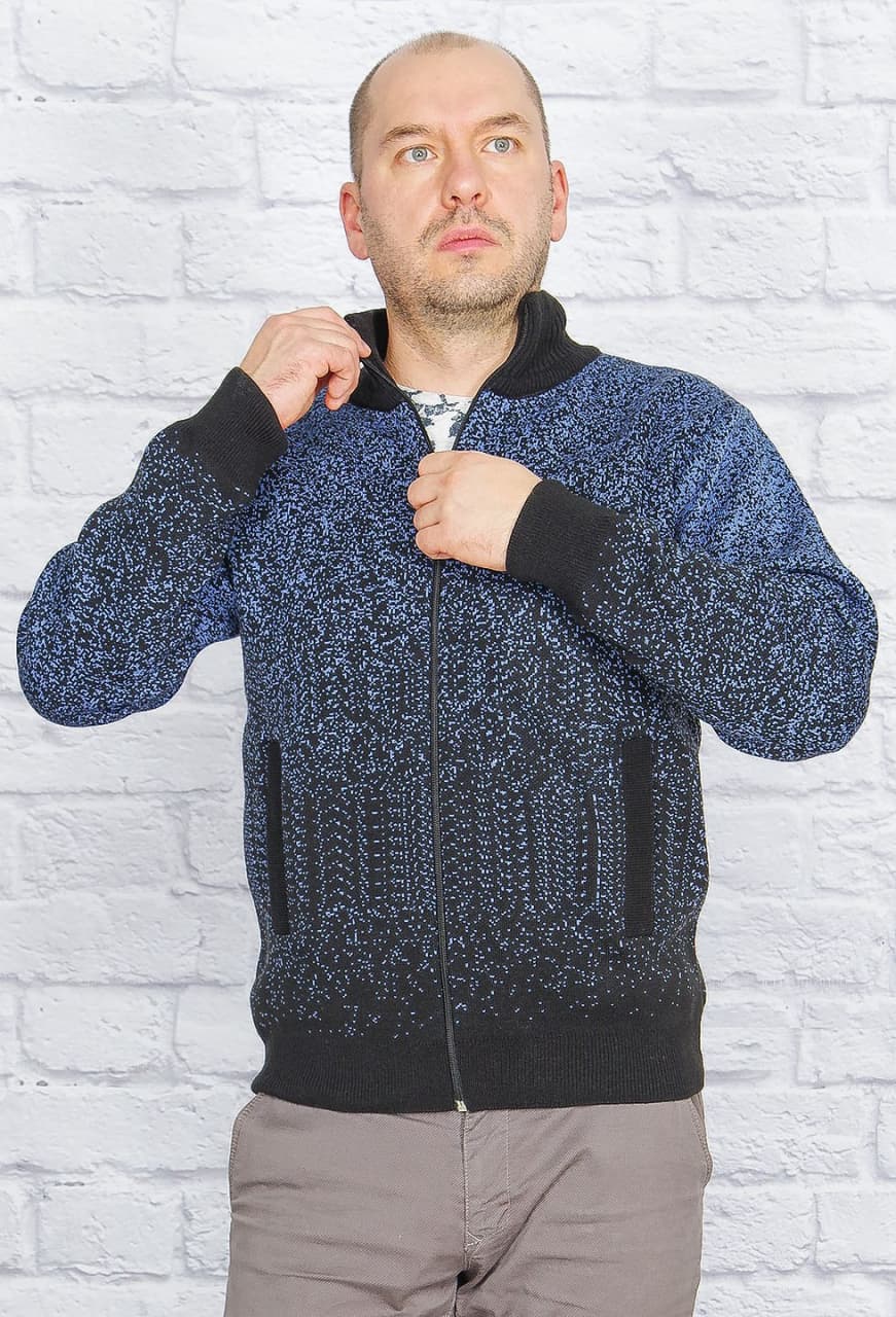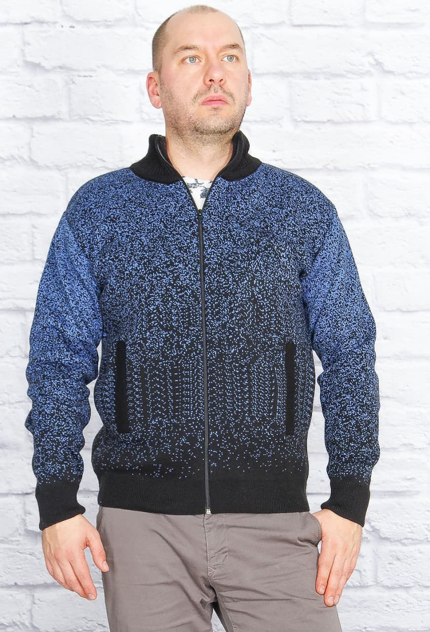 Классическая мужская кофта на молнии, рукава на манжете, воротник-стойка, боковые карманы. Вязаные изделия очень популярные в осенне-зимний период, они уютные и тёплые, отлично сочетаются и с брюками и джинсами, подойдут на любой случай.