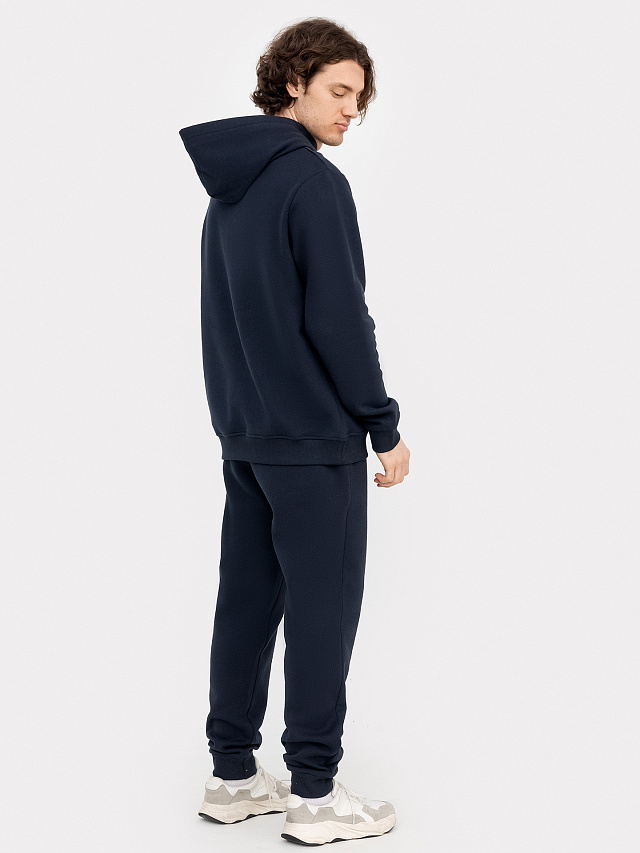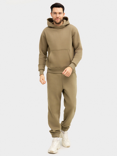 Комплект из трикотажного футера с теплым подчесом. Анорак (худи) свободного силуэта с капюшоном, который по переду идет внахлест, с круглой горловиной и длинными рукавами на манжетах. Слегка спущенная линия плеча и расширенная пройма дарят полную свободу движений. Брюки зауженного силуэта, с регулировочным шнуром в поясе, с карманами и манжетами. Широкий размерный и цветовой ряд. Отлично сядет на любую мужскую фигуру. Позволит создать трендовый образ для городских будней. Стильно и тепло!
