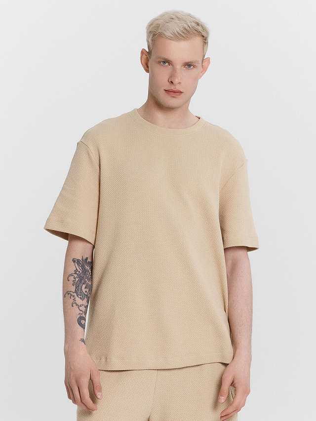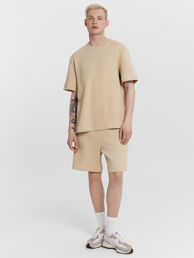 Комплект мужской бежевый: футболка и шорты