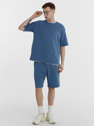 Однотонный мужской комплект из легкого хлопкового футера. Шорты прямые и свободные, длиной выше колена, с боковыми карманами и накладным сзади. Внутри пояса – эластичная тесьма и шнурок-завязка, который позволяет регулировать ширину в талии. Футболка прямая и свободная, со спущенной линией плеча и круглым вырезом. Стильная и невероятно удобная модель — отличный выбор на каждый день в теплое время года. Широкий размерный и цветовой ряд. Рекомендуем!