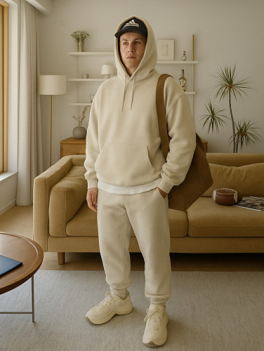 Комплект мужской (худи, брюки) в холодном бежевом цвете