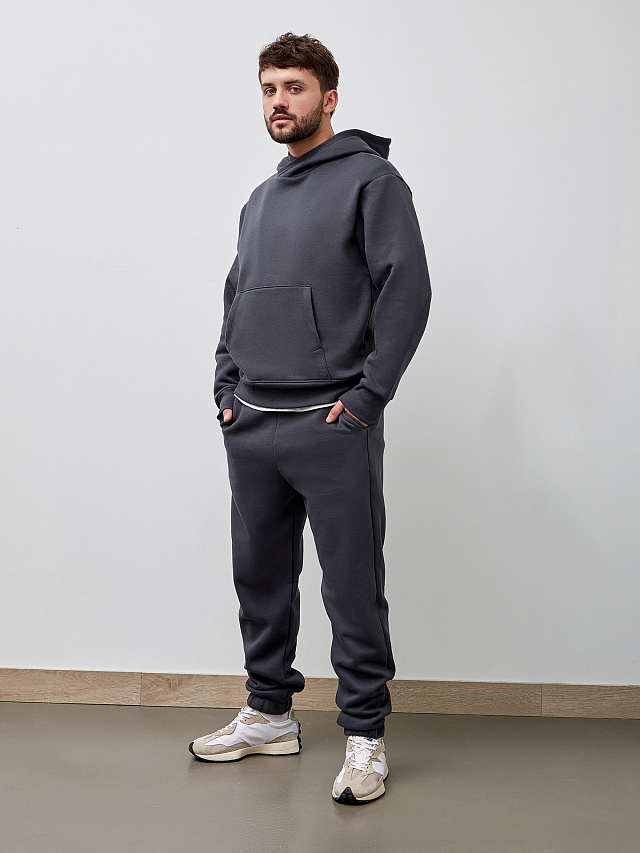 Стильный комплект мужской выполнен из трикотажного футера с подчесом. Анорак прямого силуэта, перед и спинка цельнокроеные. Круглый вырез горловины, с капюшоном. На передней детали настрочен карман-кенгуру. Рукава длинные втачные со спущенной линией плеча. По низу рукавов и анорака притачены манжеты и пояс из рибаны. Брюки свободного силуэта. Посадка средняя. Сидение немного спущено. В боковых швах выполнены функциональные карманы. Пояс отрезной с эластичной тесьмой. Спереди в поясе пробиты петли и протянут шнур. Комфортная и невероятно удобная модель для повседневной носки. Отличный вариант для демисезона. Материал изделия мягкий и приятный. Отлично держит форму и не деформируется. Широкий размерный и цветовой ряд. Рекомендуем эту модель для активных мужчин!
