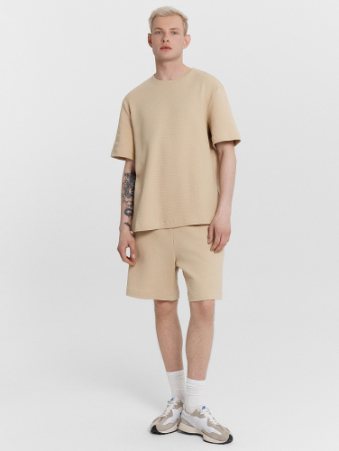 Однотонный мужской комплект из легкого хлопкового футера — идеальное решение для комфортного гардероба весной и летом. Шорты прямые и свободные, длиной выше колена, обеспечивают удобную посадку и свободу движений. Боковые карманы добавляют практичности, а накладной карман сзади — стильный и функциональный акцент. Внутри пояса предусмотрена эластичная тесьма и шнурок-завязка, позволяющий регулировать ширину в талии, обеспечивая идеальную посадку. Футболка также выполнена в свободном крое, со спущенной линией плеча, создающей расслабленный и современный стиль. Круглый вырез горловины добавляет универсальности, делая модель подходящей для разных случаев. Главное преимущество этого комплекта — материал. Хлопковый футер отличается мягкостью, легкостью и воздухопроницаемостью, что делает его комфортным в жаркую погоду. Натуральные волокна позволяют коже дышать, обеспечивая ощущение свежести на протяжении всего дня. Универсальный и удобный вариант, который легко сочетается с кедами, сандалиями или спортивной обувью, создавая стильный и практичный образ.