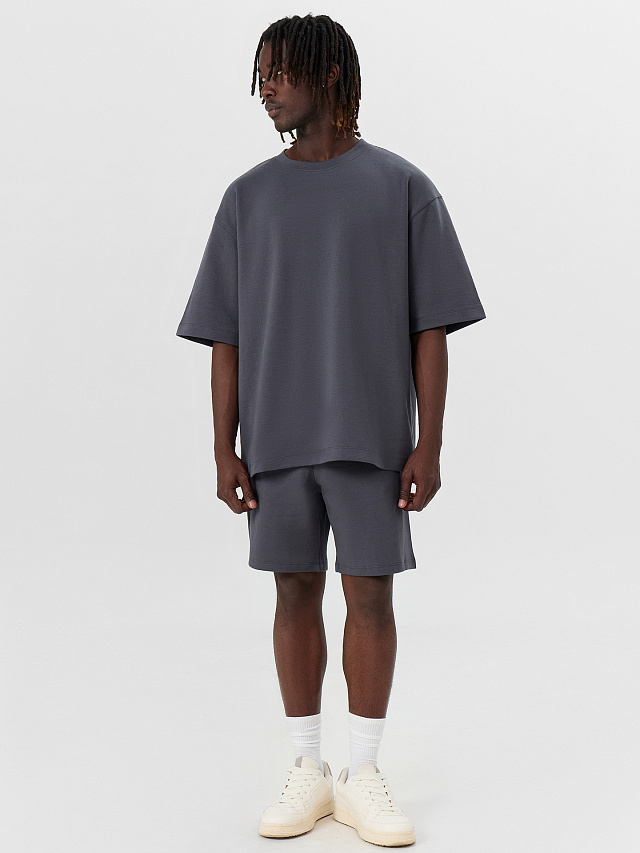 Мужской комплект станет отличным выбором для комфортного и стильного повседневного образа. Футболка прямого свободного кроя с круглой горловиной и слегка спущенной линией плеча добавляет расслабленный вид. Короткие рукава и обработка нижних срезов швом вподгибку обеспечивают аккуратный и завершенный вид. Шорты прямого свободного кроя длиной до колен создают удобство в движении, а эластичный пояс на кулиске позволяет подогнать посадку под индивидуальные предпочтения. Боковые карманы добавляют практичности и удобства. Изделие выполнено из интерлока — двойного трикотажа, известного своей прочностью, мягкостью и приятной текстурой. Он обладает высокой воздухопроницаемостью, эластичностью и долго сохраняет форму, не растягиваясь и не деформируясь. Этот материал обеспечивает комфорт в течение всего дня и идеально подходит для одежды, которая требует легкости и долговечности. Такой комплект идеально подходит для отдыха дома, прогулок или занятий спортом, сочетая функциональность и стиль. Комфортный и универсальный выбор для любого дня.