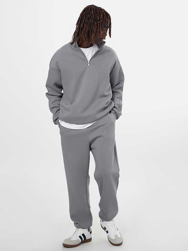Серый мужской костюм из мягкого футера с начесом создан для повседневного комфорта в прохладную погоду. Гармоничный набор из толстовки и брюк обеспечивает удобство во время прогулок, отдыха дома или неформальных встреч.