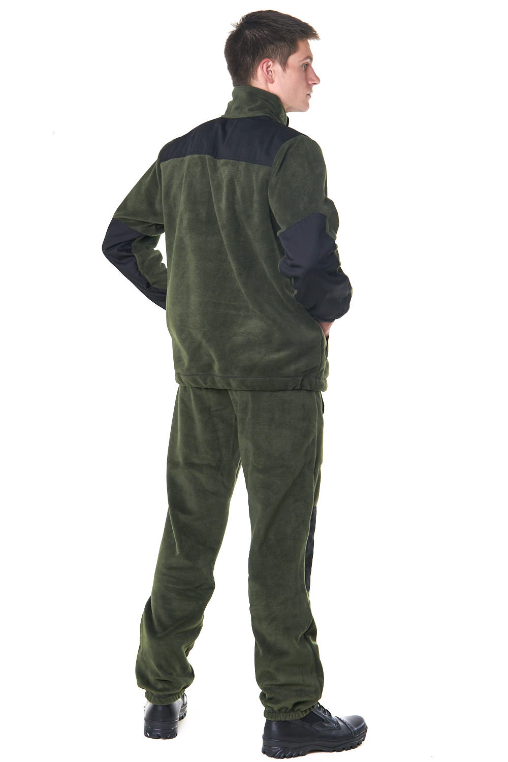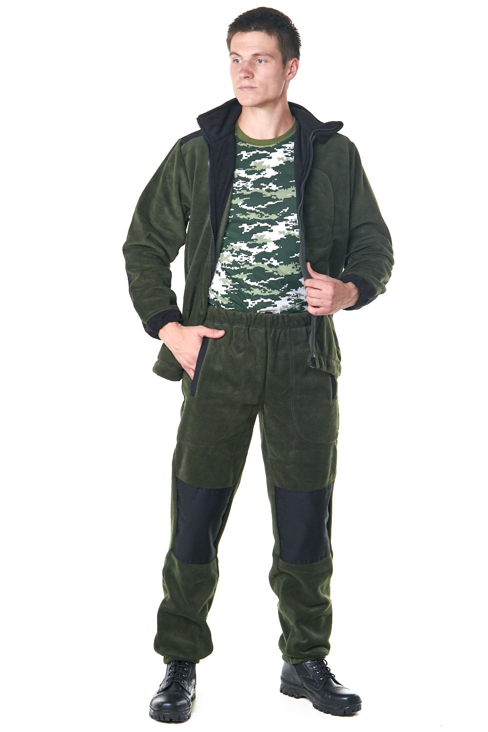 Брюки на круговом притачном поясе.На передних половинках обработаны два боковых кармана в листочку с молнией и настрочены наколенники для усиления.Детали из отделочной ткани: листочки, наколенники.>Состав ткани: 100%ПЭ Модель: Костюм флис с усилением Температурный режим: от -5 до +15 гр.С Назначение: Охота, рыбалка, туризм Сезон: Демисезон Тип: Костюм Цвет: Олива Нешуршащая: Да Ветрозащитная: Да Дышащая: Да