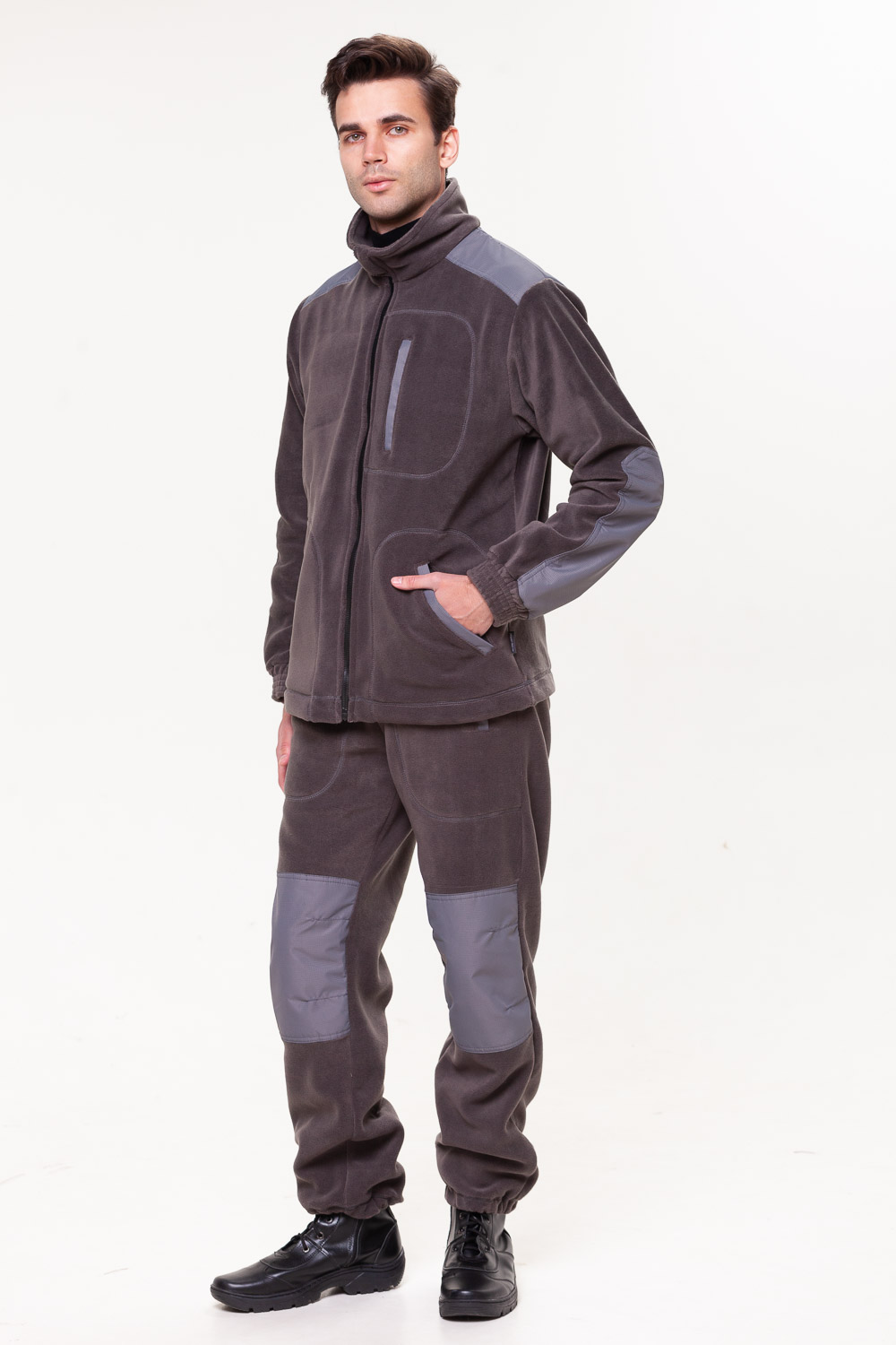 Брюки на круговом притачном поясе.На передних половинках обработаны два боковых кармана в листочку с молнией и настрочены наколенники для усиления.Детали из отделочной ткани: листочки, наколенники.>Состав ткани: 100%ПЭ Модель: Костюм флис с усилением Температурный режим: от +10 гр.С Назначение: Охота, рыбалка, туризм Сезон: Демисезон Тип: Костюм Цвет: Серый Нешуршащая: Да Ветрозащитная: Да Дышащая: Да