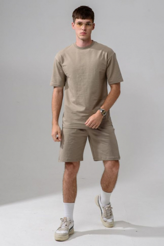 Ткань: футер 2-х нитка; Состав: 92% хлопок , 8% полиэстер; Производство: г. Иваново, швейное производство НАТАЛИ; Тип изделия: костюмы с шортами; Цвет: бежевый